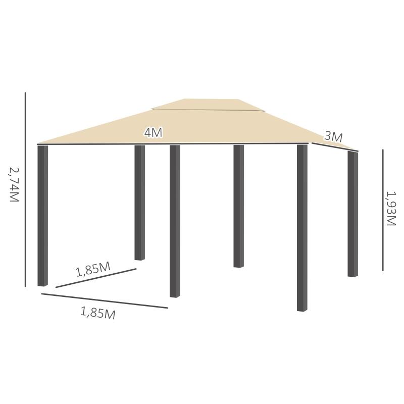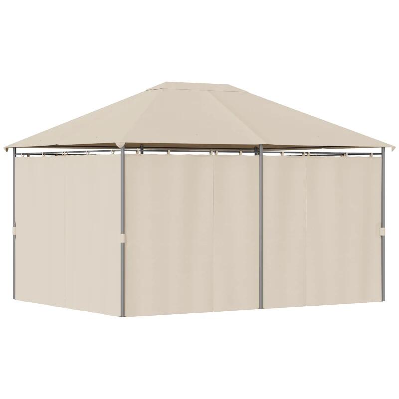 Kerti/teraszos pavilon/pavilon, fémvázas, függönyös, bézs, 4x3x2,64 m