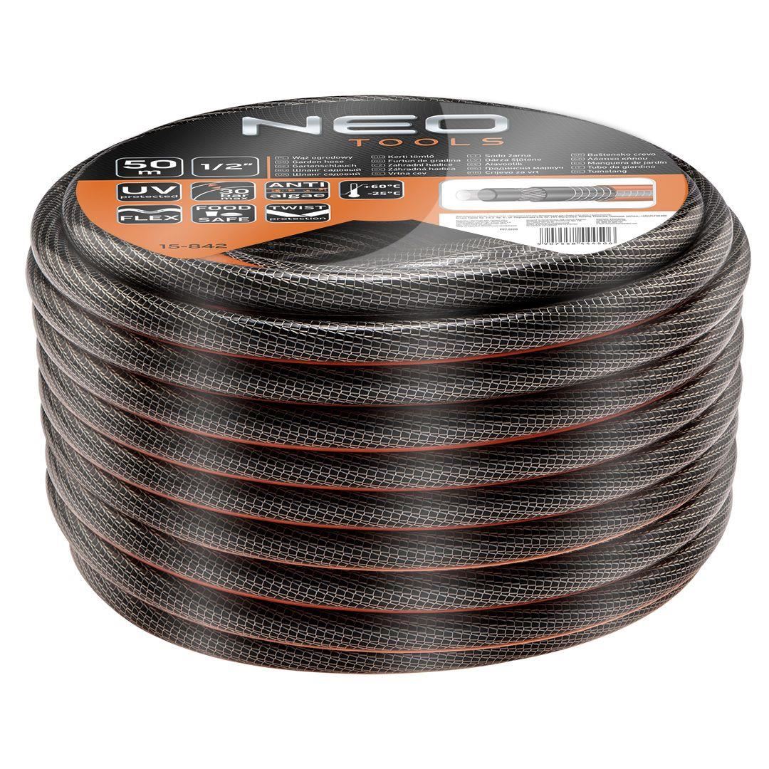 Kerti tömlőkocsi, 50 m, 1/2" ;, csavarásgátló, + szórópisztoly, NEO