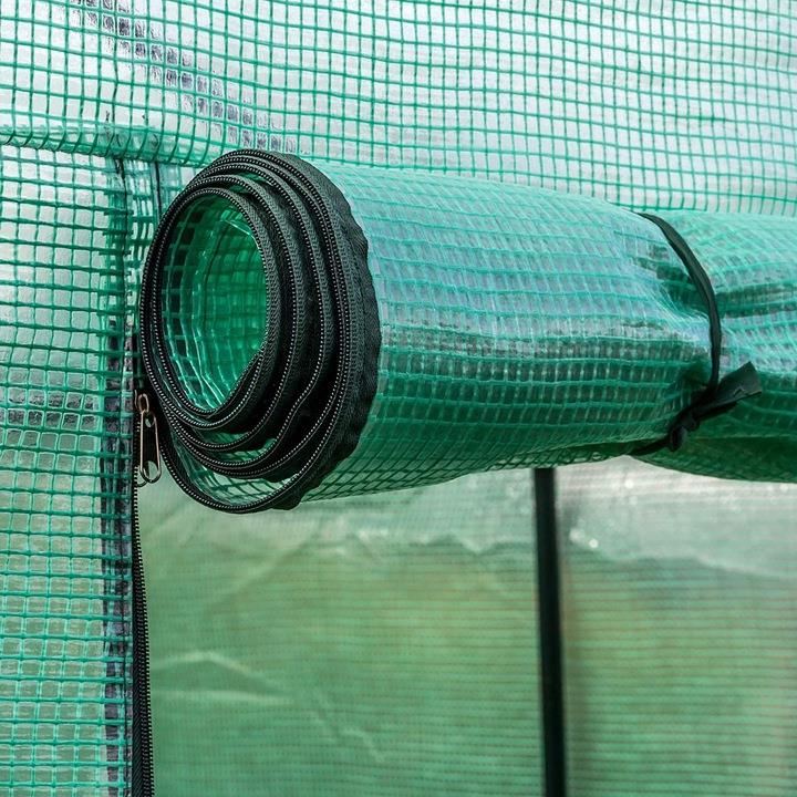 - A fóliarétegbe beépített zöld PP háló megvédi az üvegházat a töréstől.