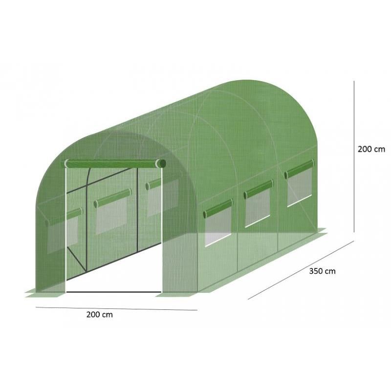 Kerti üvegház, alagút típusú, 6 ablakos, fémkeretes, PE + PP fólia, 2x3,5x2 m, Chomik
