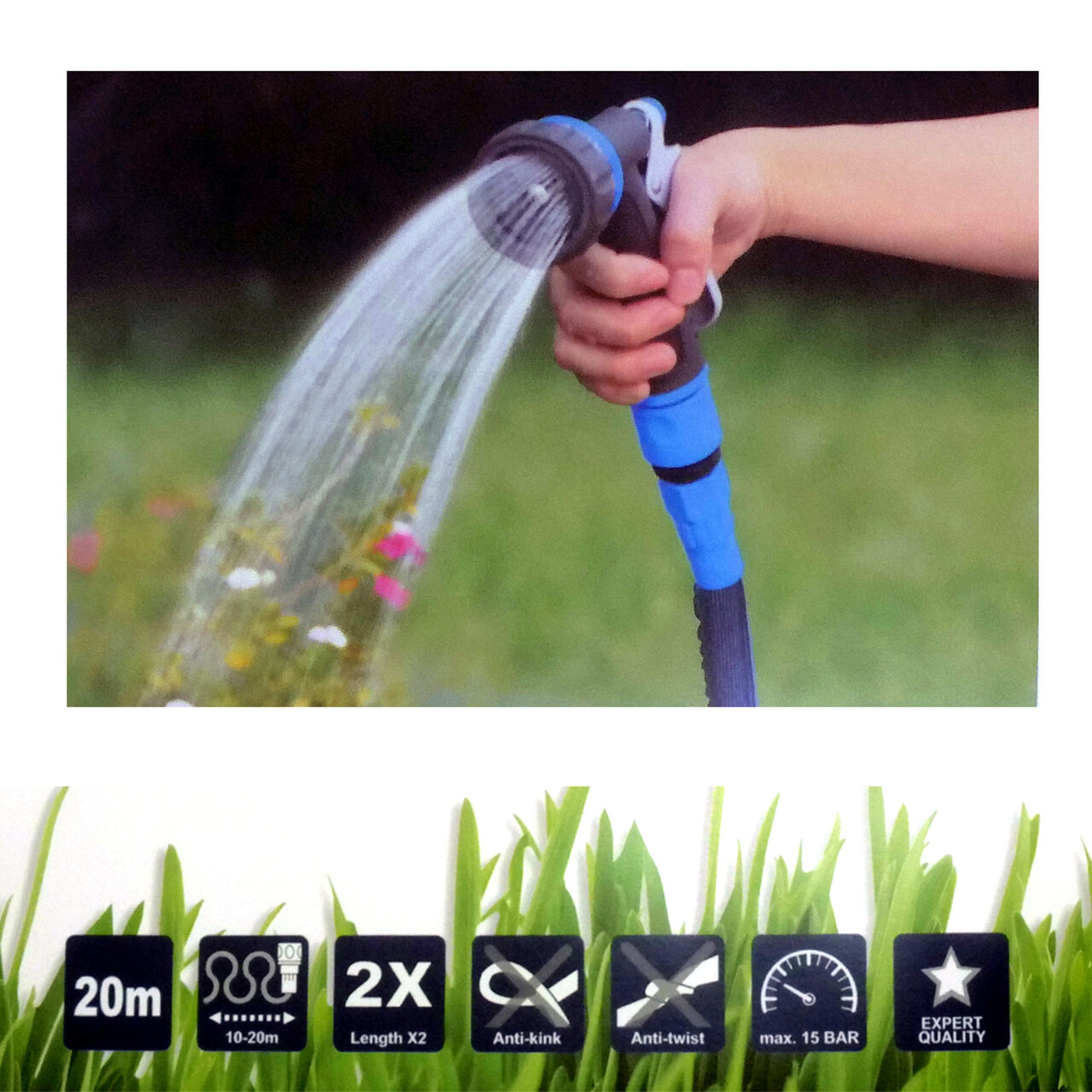 Kihúzható kerti tömlő szórópisztollyal, 20m