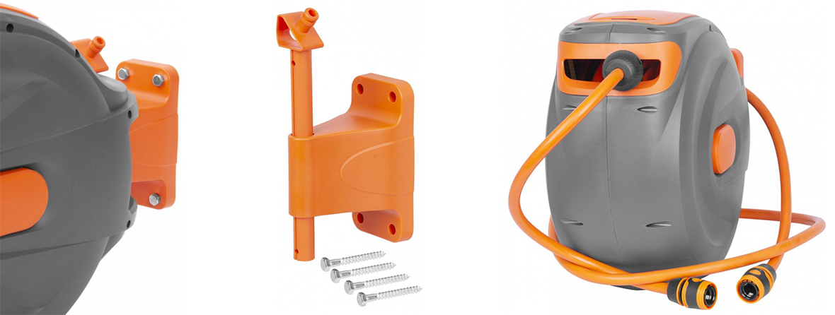 A tekercsdob tömlő hordozható, de az   fali konzollal is rendelkezik;