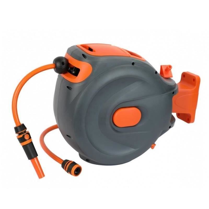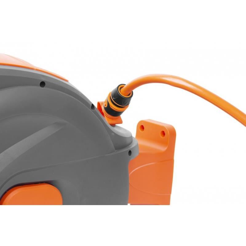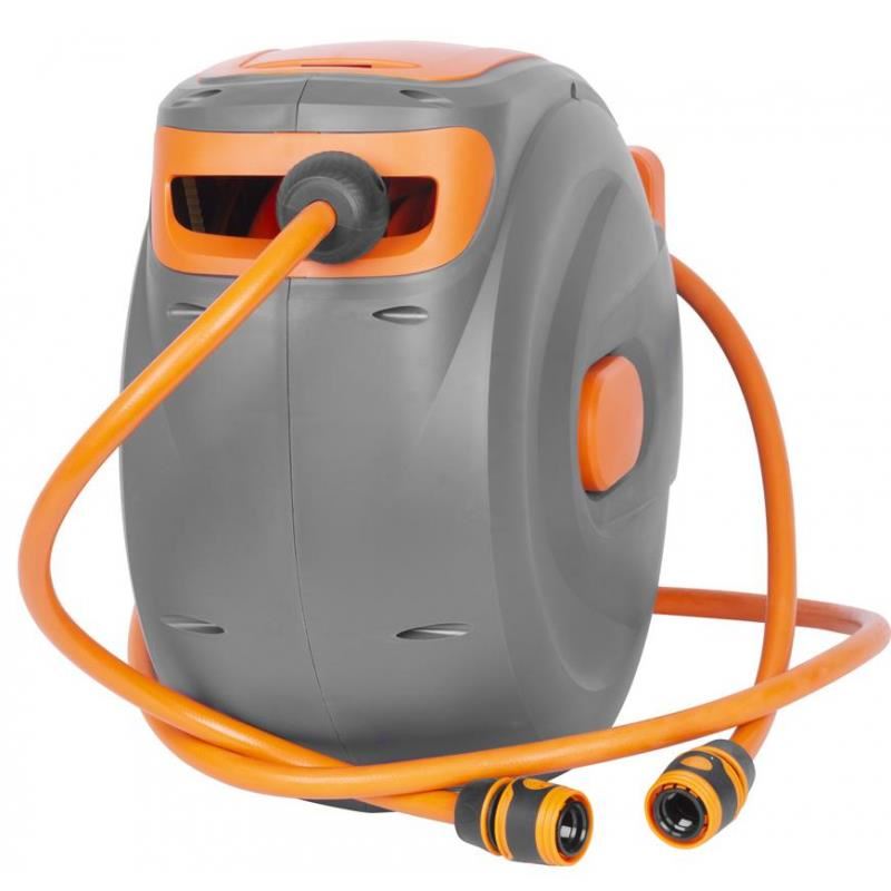 A csomag tartalma: 30 m + 2 m tömlő, állítható fúvóka, 2 gyorscsatlakozó, szűkítő adapter a szelephez, elfordítható fali tartó, műszaki felszerelés a telepítéshez.