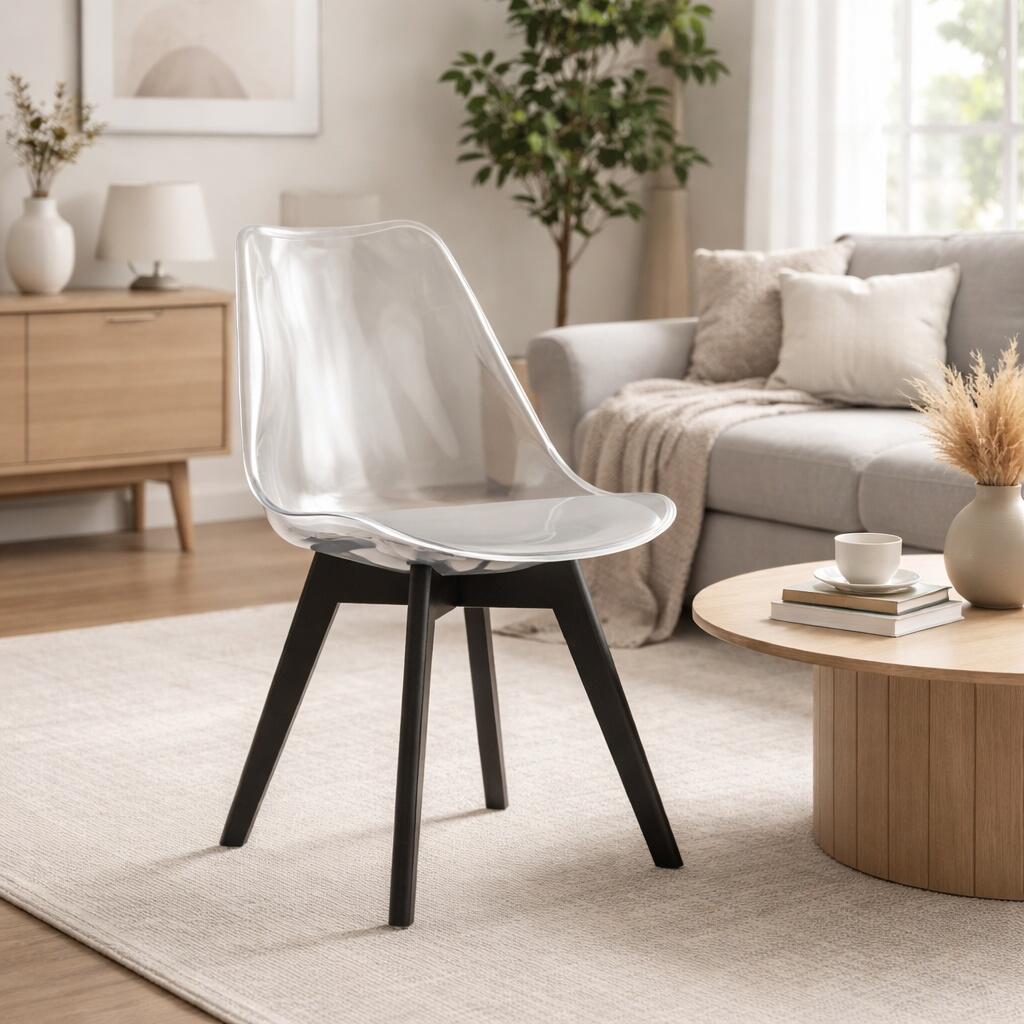 Konyha/nappali szék, Artool, Mark, PP, fa, átlátszó és fekete, 49x43x82 cm
