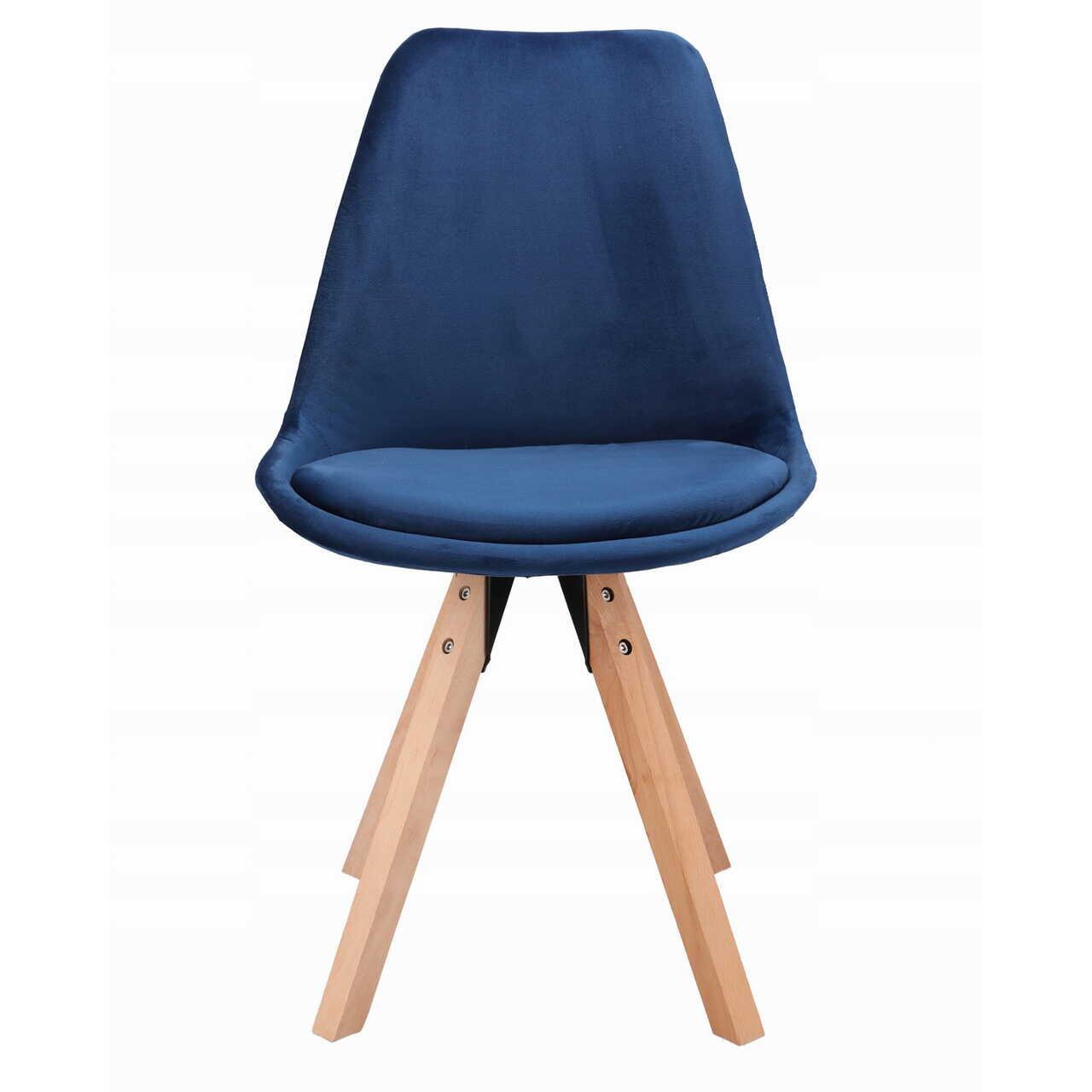 Konyha/nappali szék, Jumi, Saida, bársony, fa, kék és natúr, 49x52x83 cm