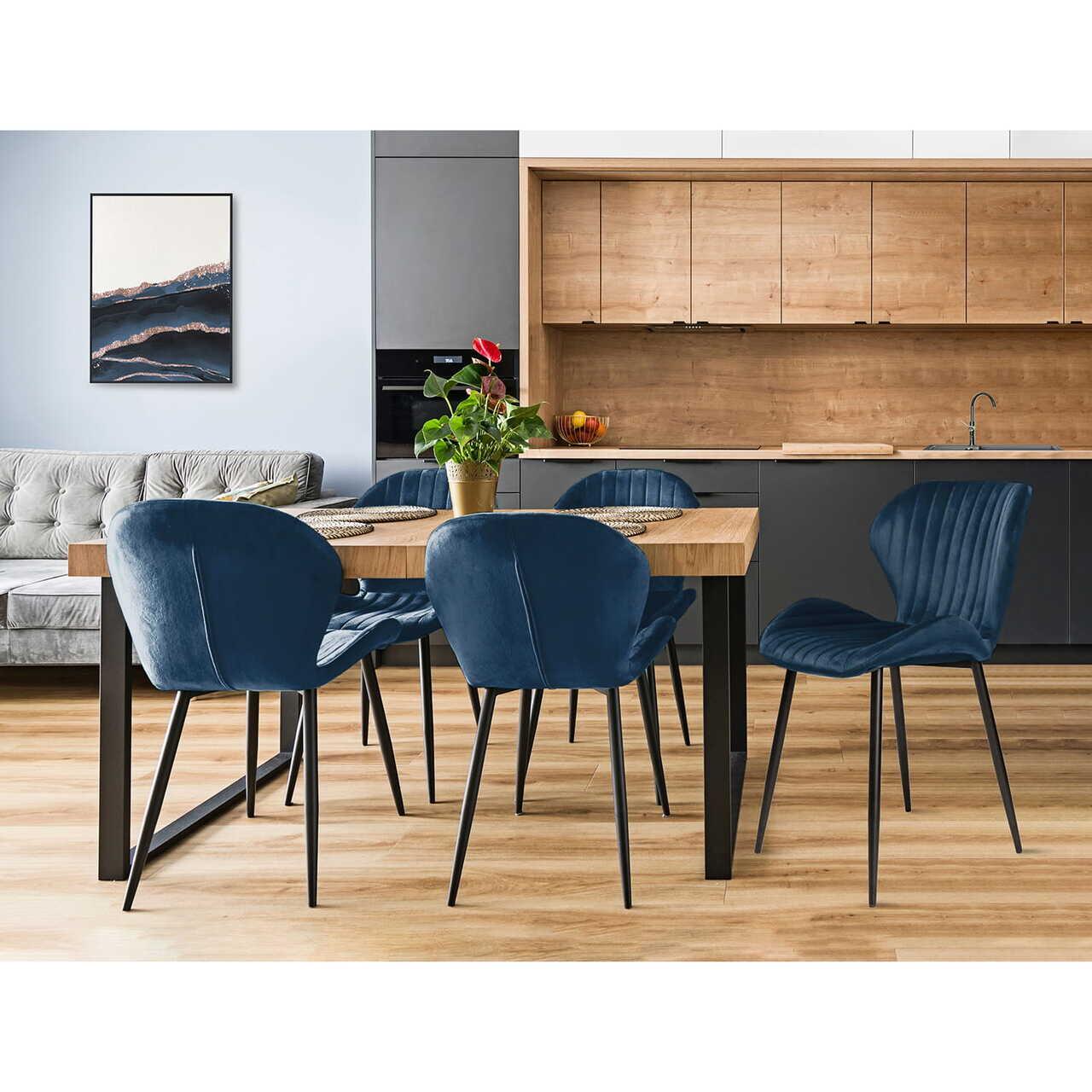 Konyha/nappali szék, Jumi, Veira, bársony, fém, kék, 50x58x84 cm