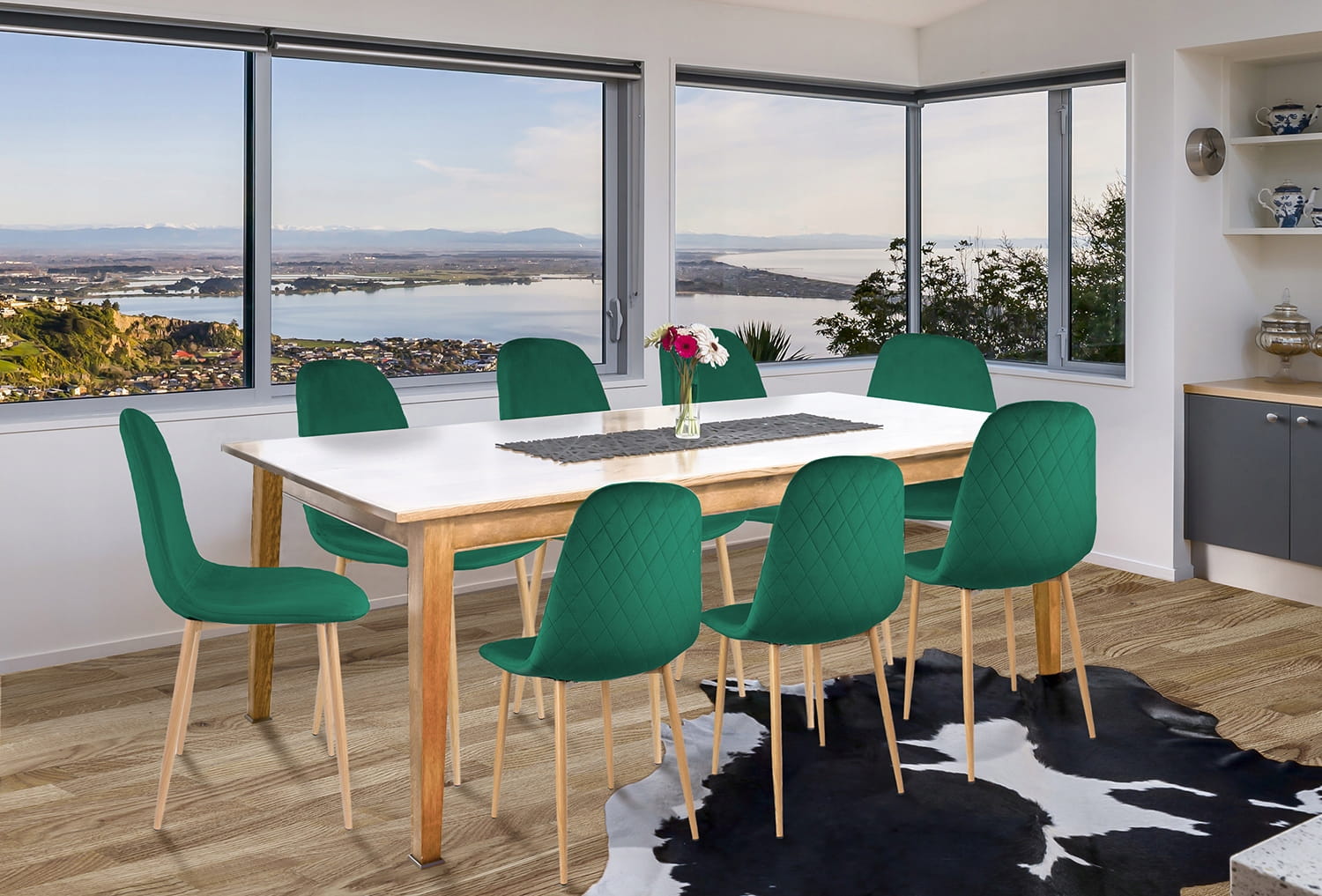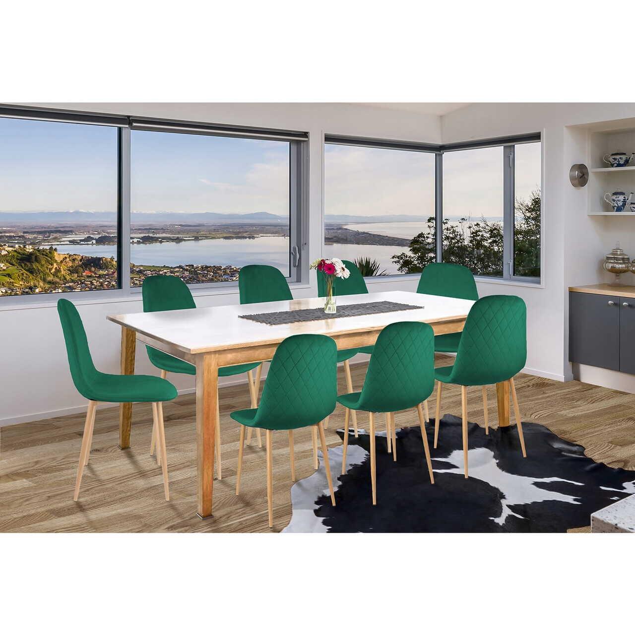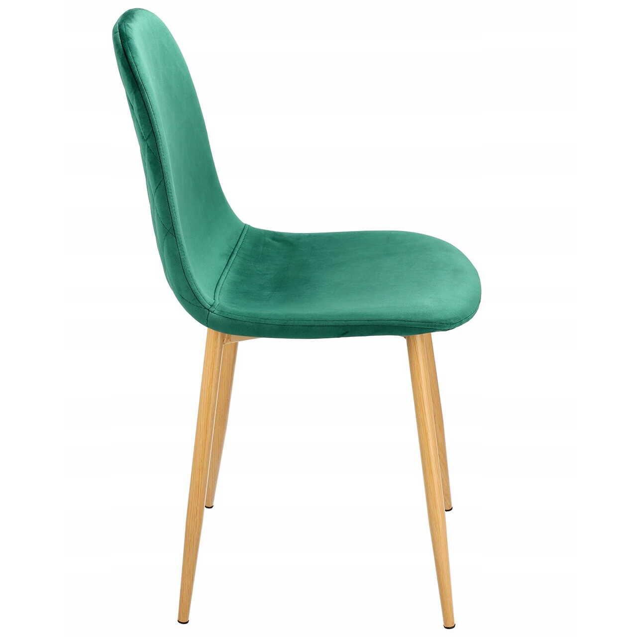 Konyha/nappali szék, Jumi, Vigo, bársony, fém, zöld és natúr, 44x52x85 cm