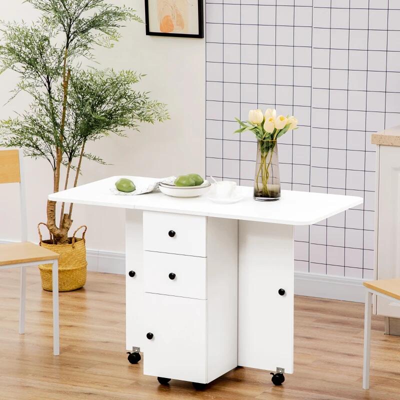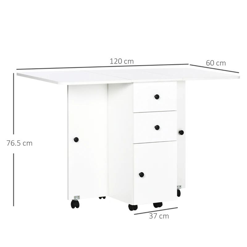 Konyhaasztal, kerekeken, kihúzható, halvány, fehér, 2 fiók, 1 szekrény, 37-120x60x76,5 cm