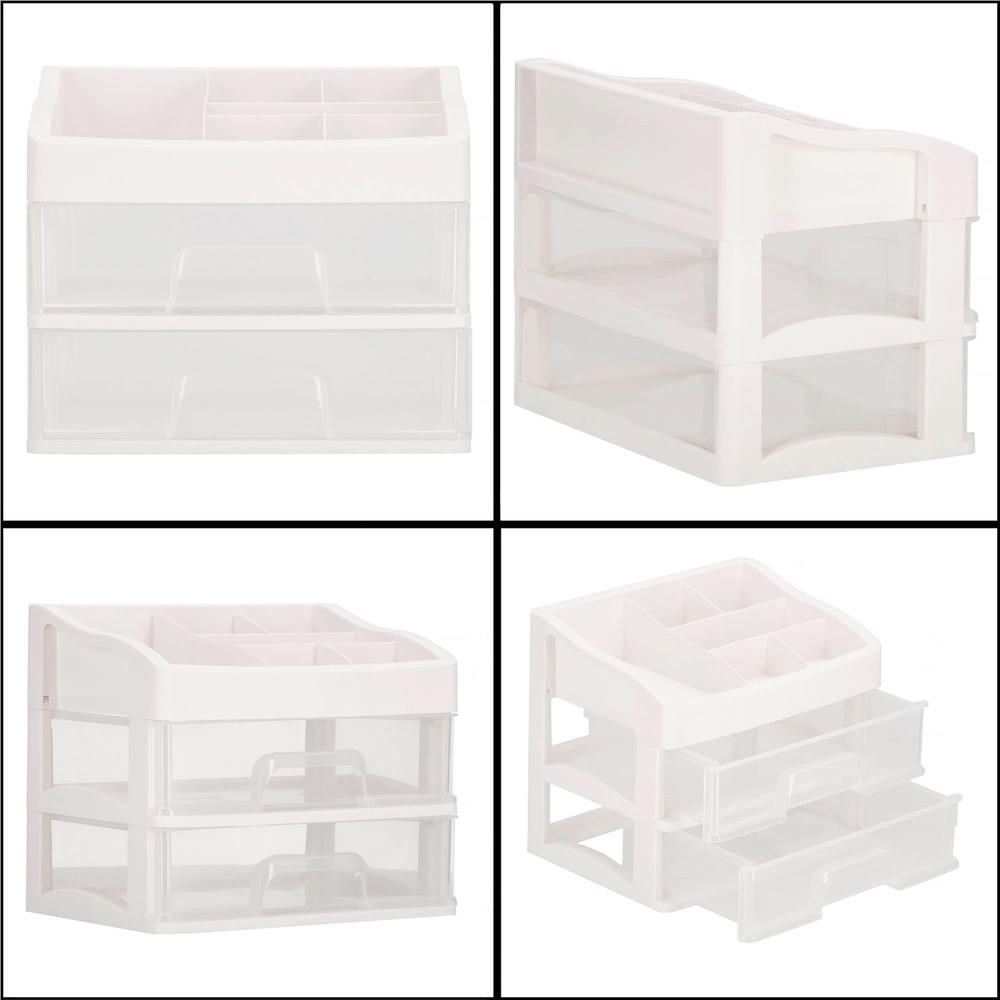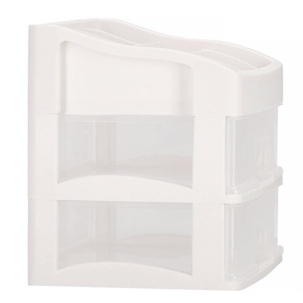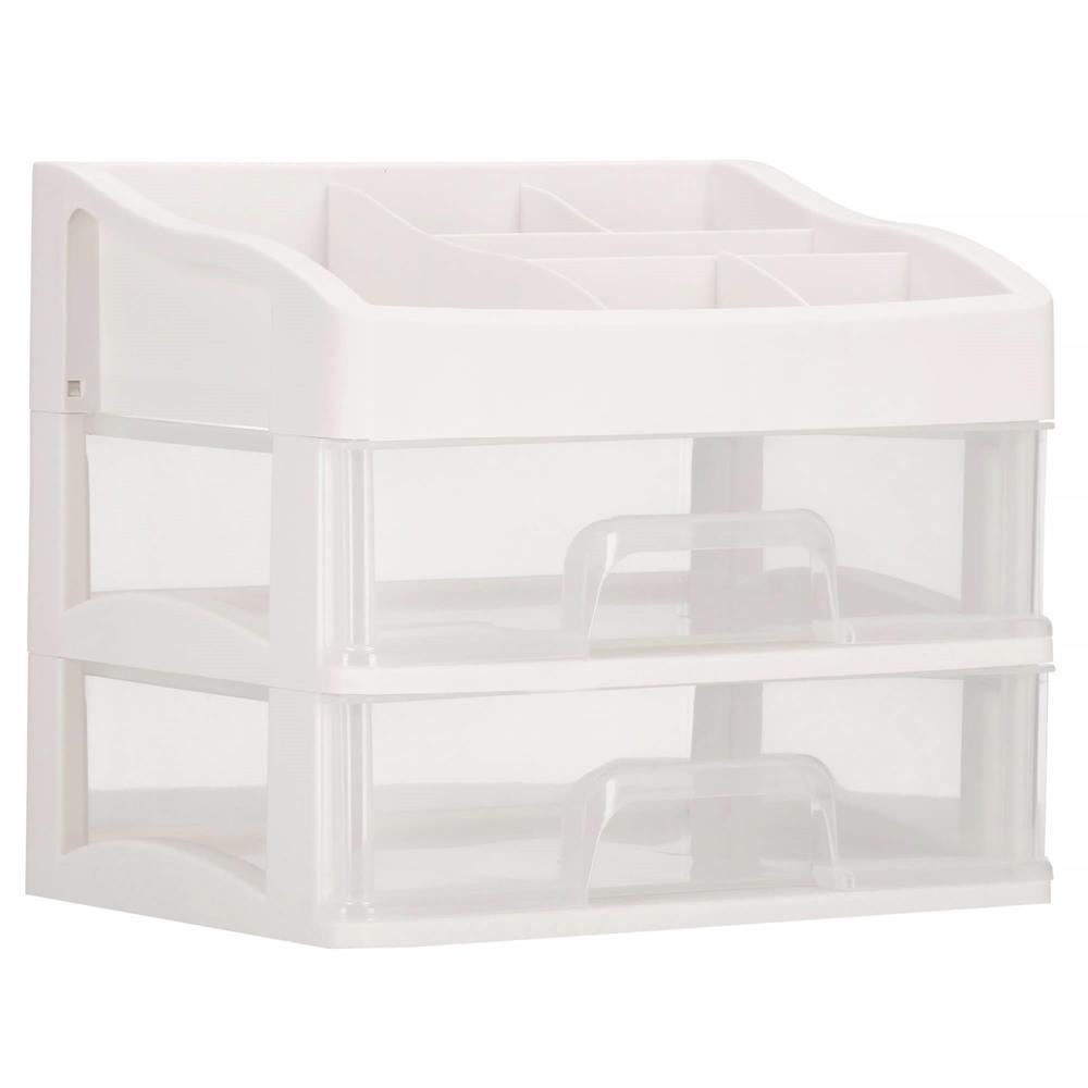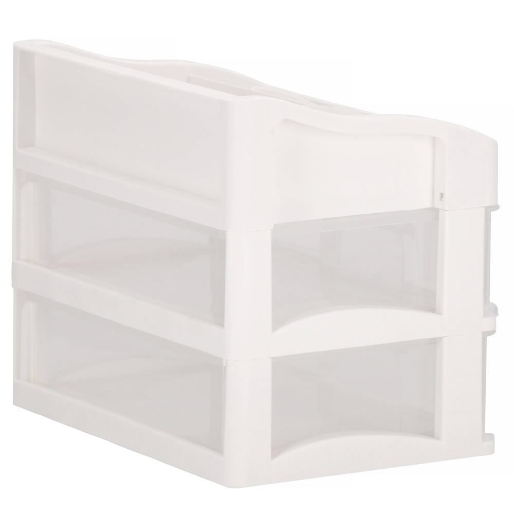 Kozmetikai rendszerező, műanyag, 3 szintes, 2 fiókos, fehér, 30x25x34 cm, Springos
