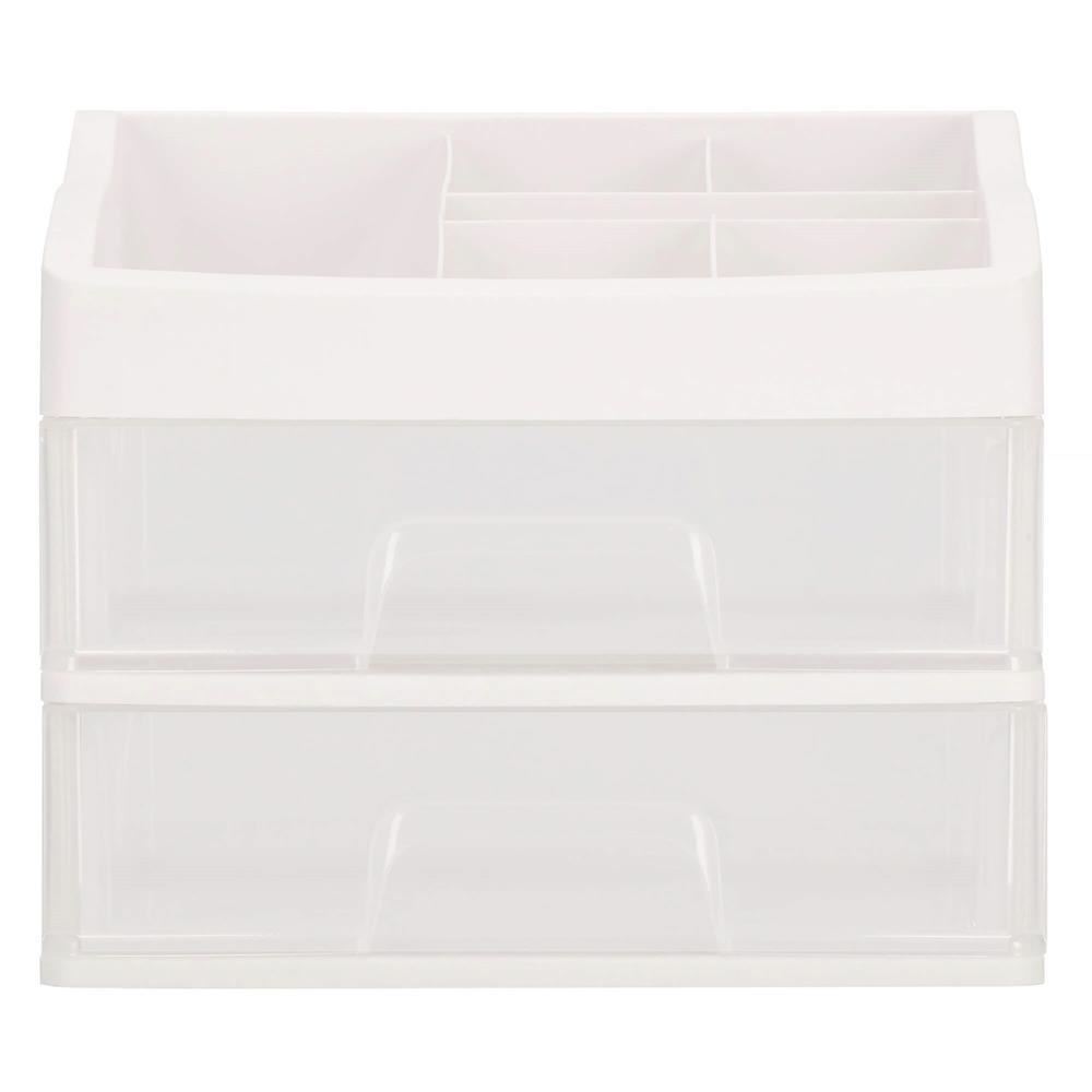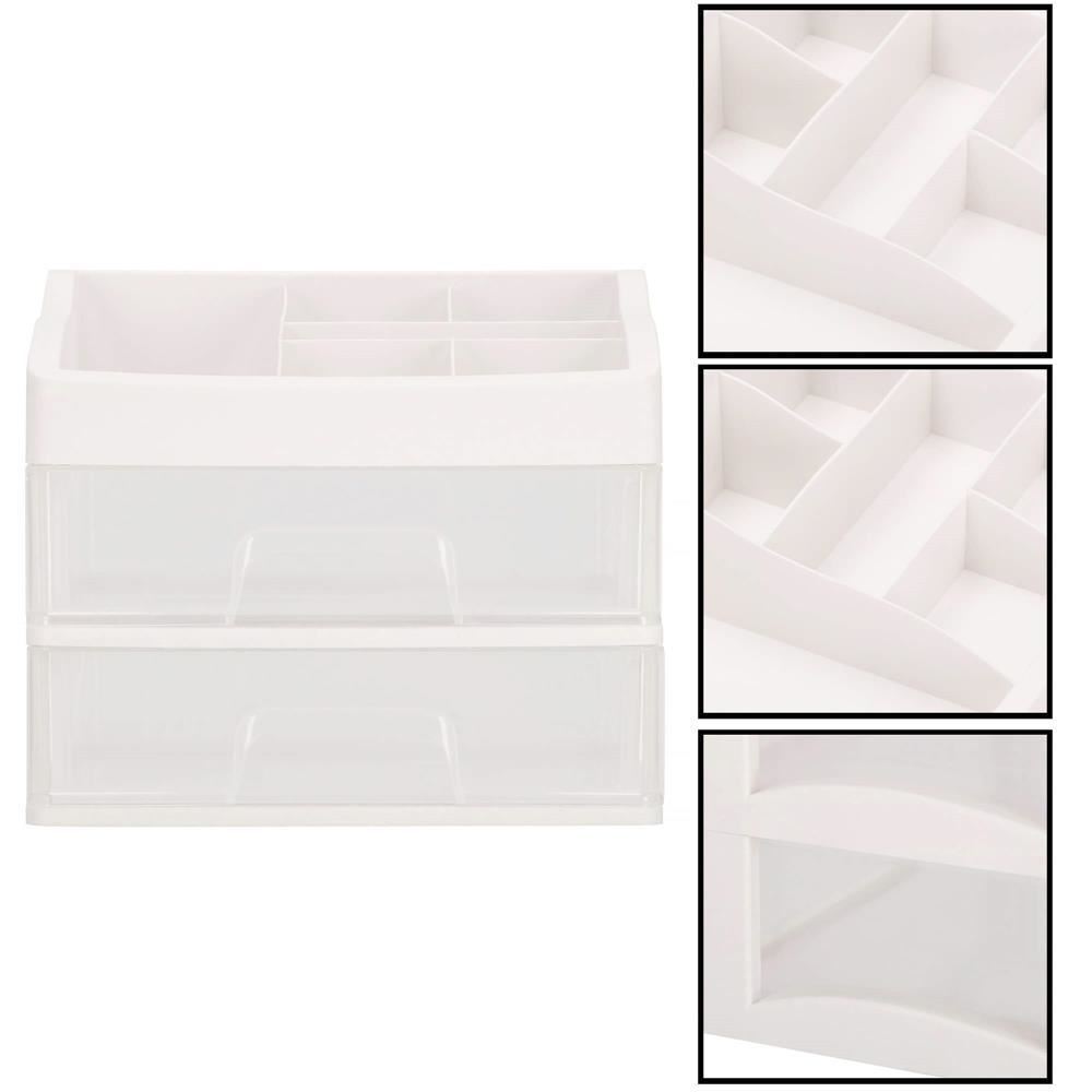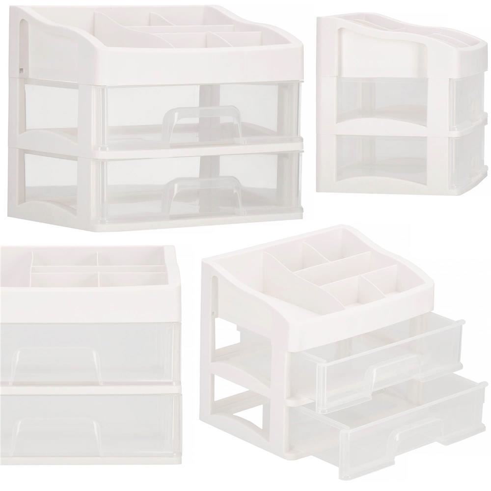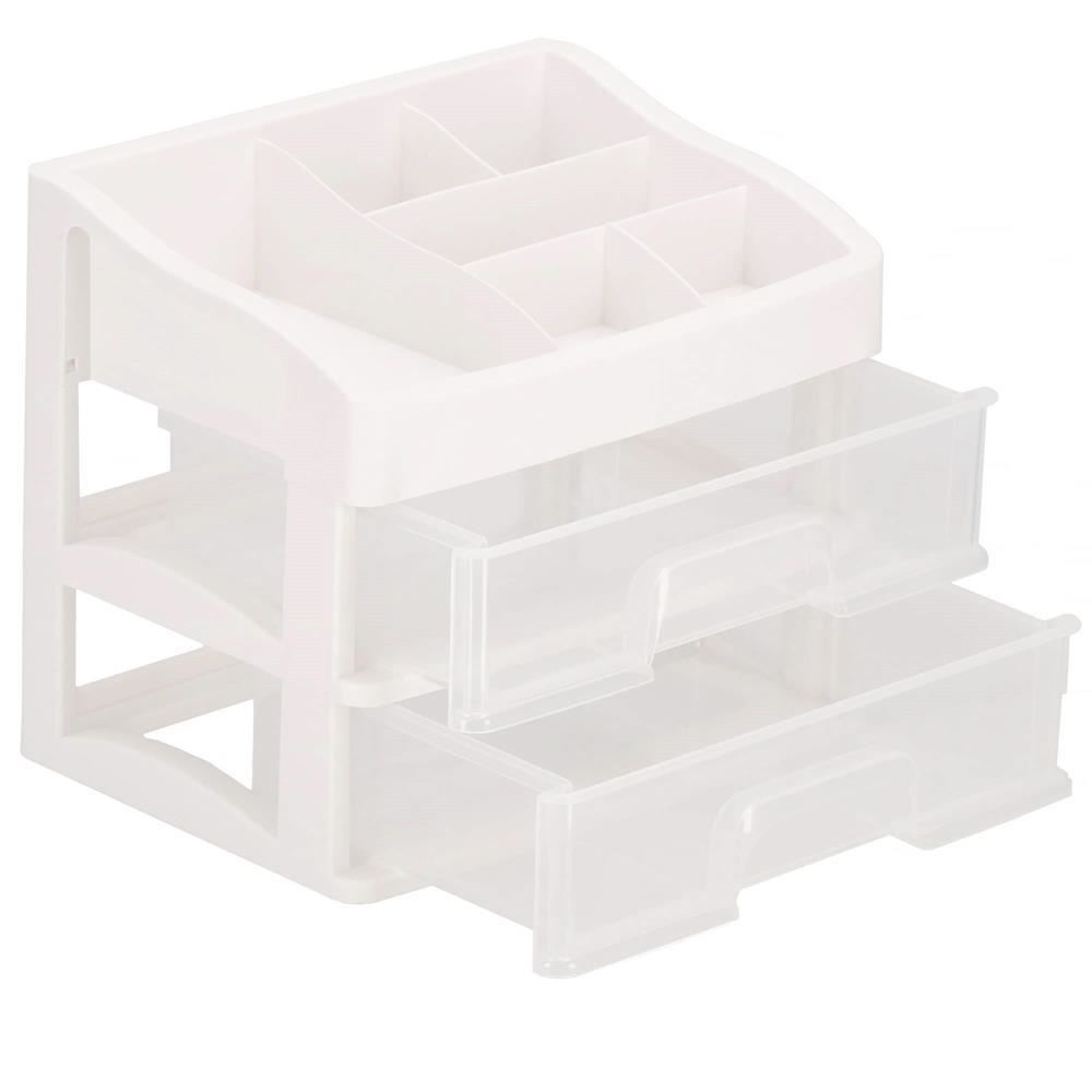 Kozmetikai rendszerező, műanyag, 3 szintes, 2 fiókos, fehér, 30x25x34 cm, Springos