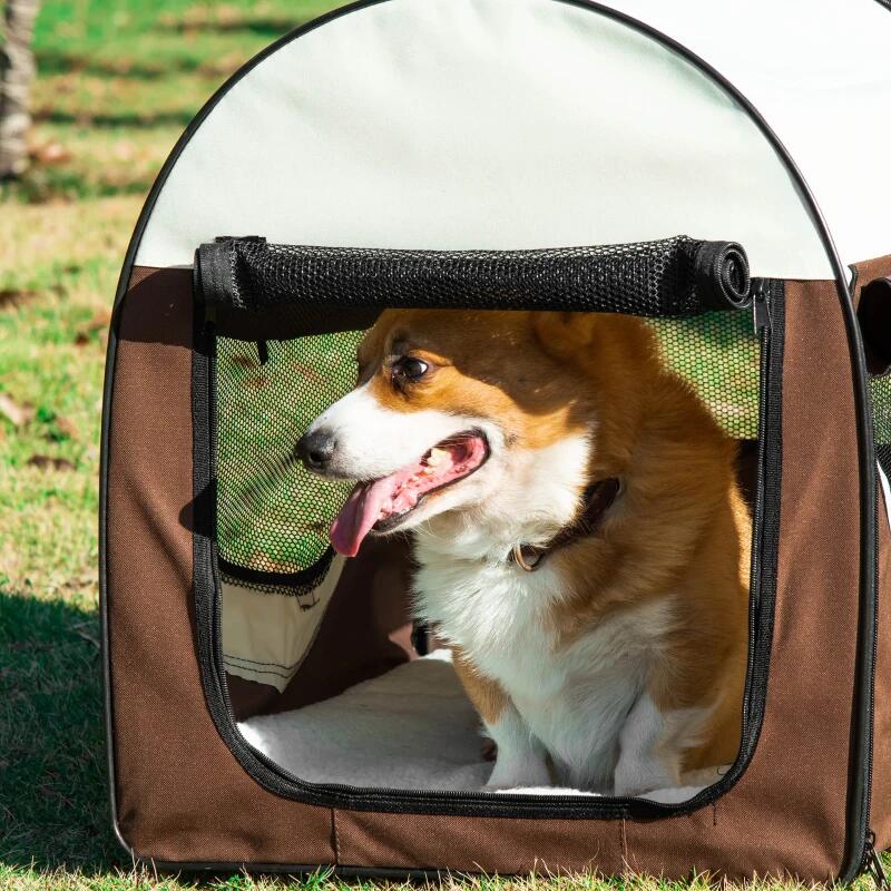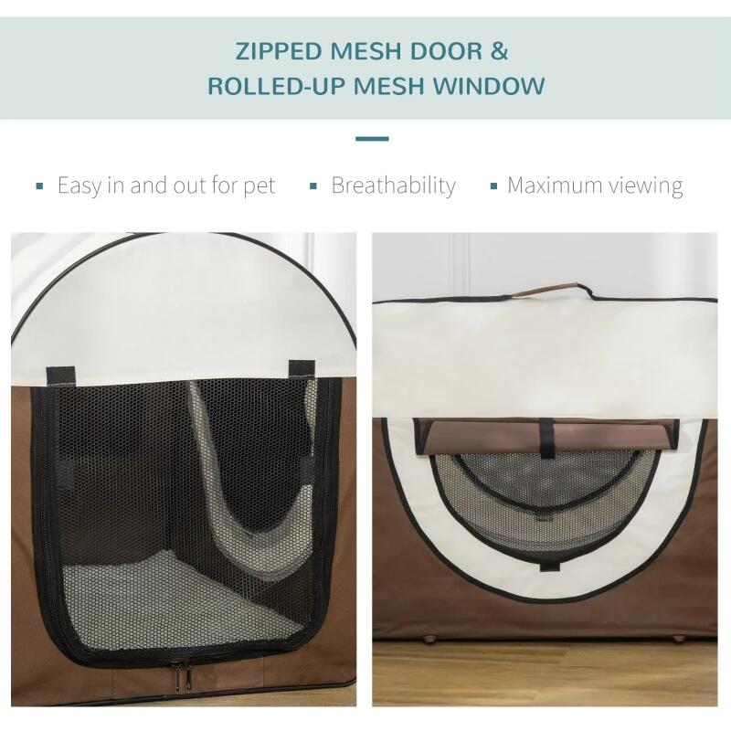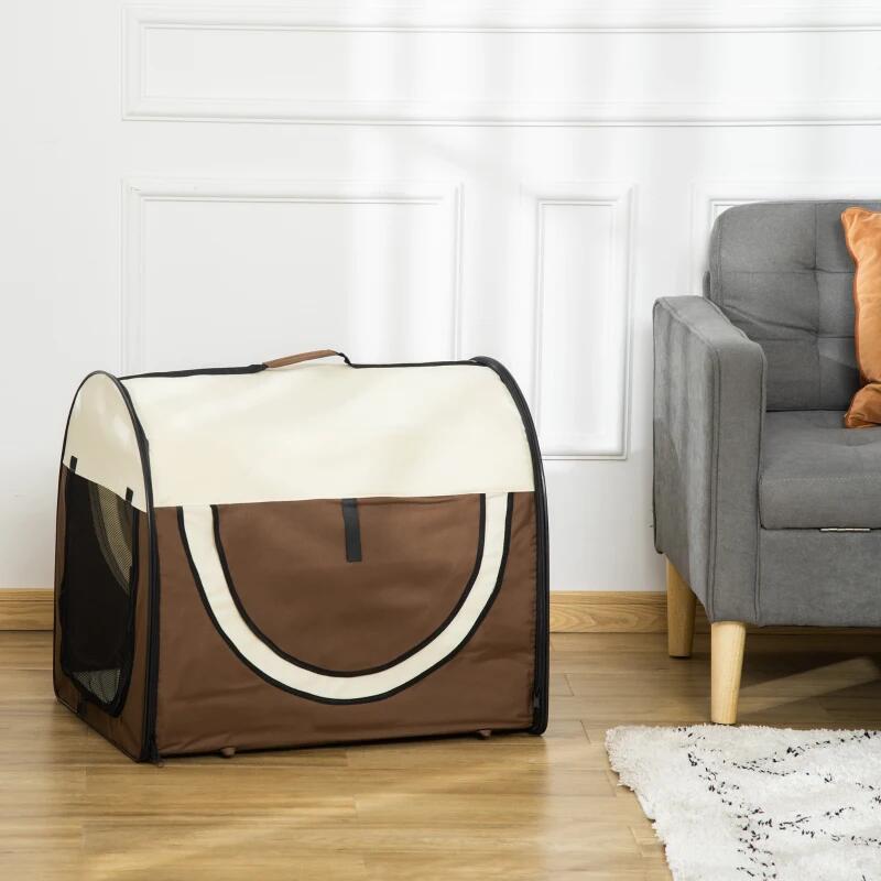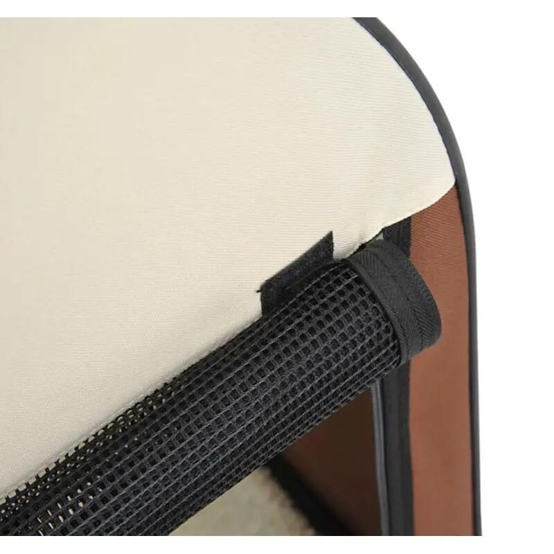 Kutya/macska szállítótáska, barna és bézs, Oxford anyag, PVC, vízálló, összecsukható, SM méret, 70x51x59 cm