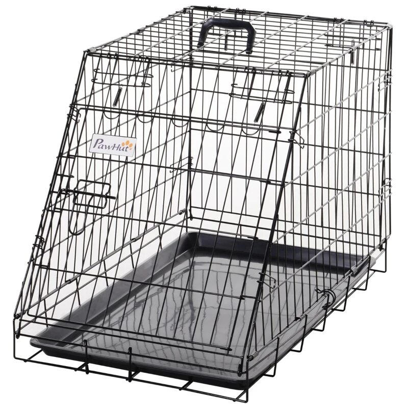 Kutyaketrec, fém, műanyag, szállító fogantyúval, összecsukható, fekete, 47x77x60 cm