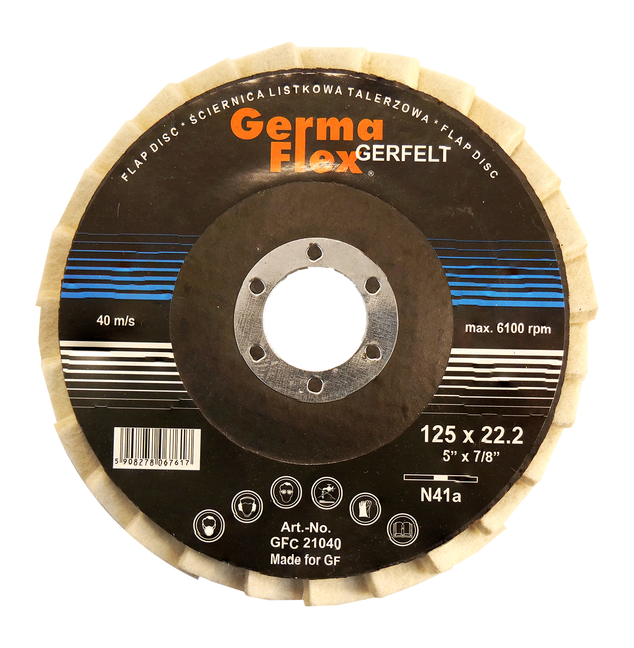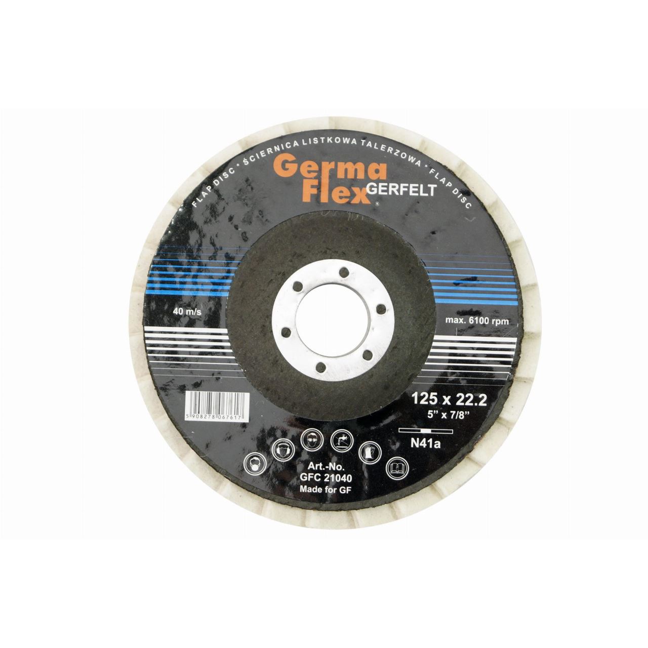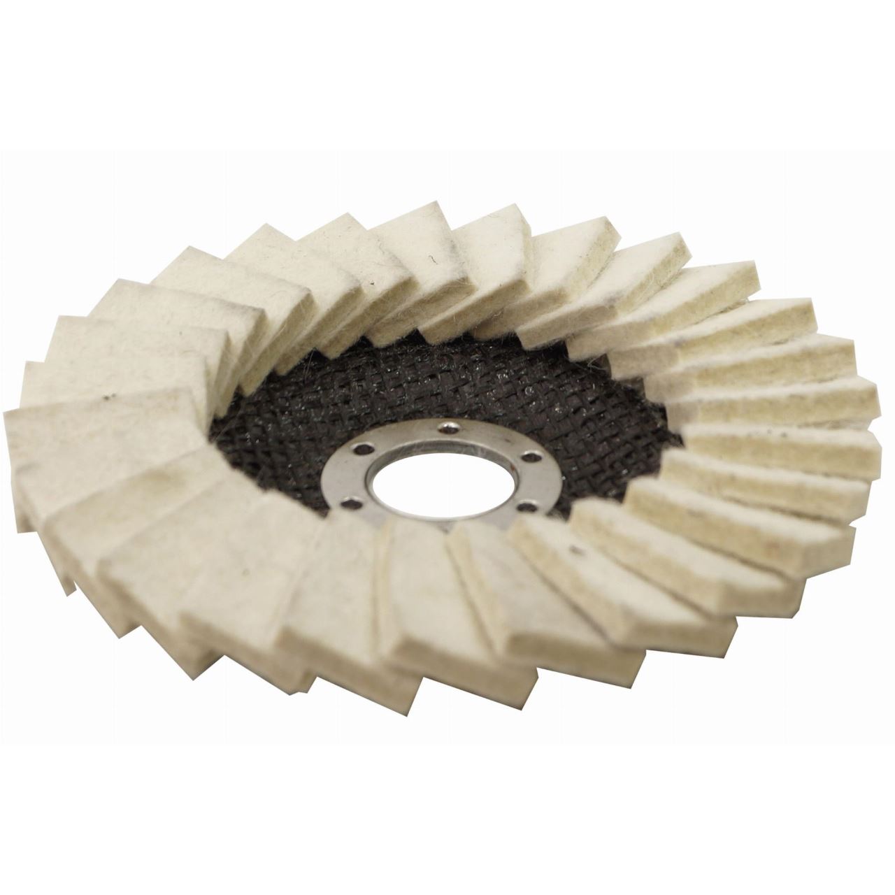 Lamellás filctárcsa, 125x10x22,2 mm Jellemzők: Belső átmérő: 22,2 mm Korongvastagság: 10 mm Külső átmérő: 125 mm Maximális fordulatszám: 6100 ford./perc