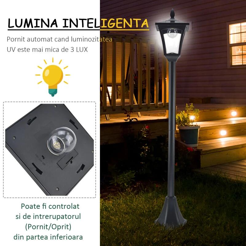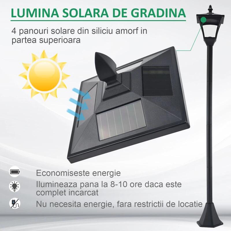 Lámpás típusú napelemes lámpa a kertbe, 1 LED, 18x18x160 cm