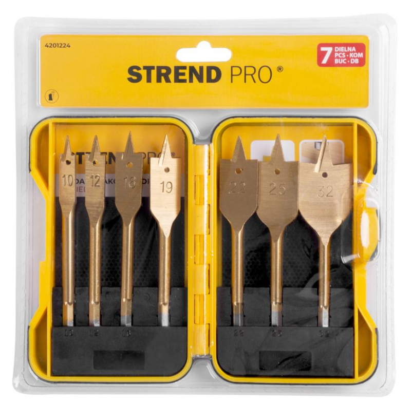 Lapos fúrószár fához, 7 db-os készlet, 10-32 mm, Strend Pro