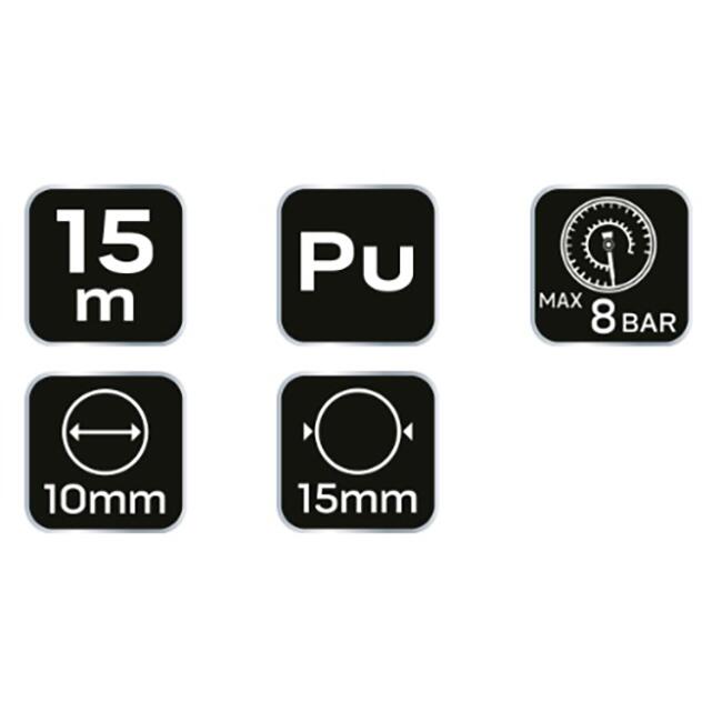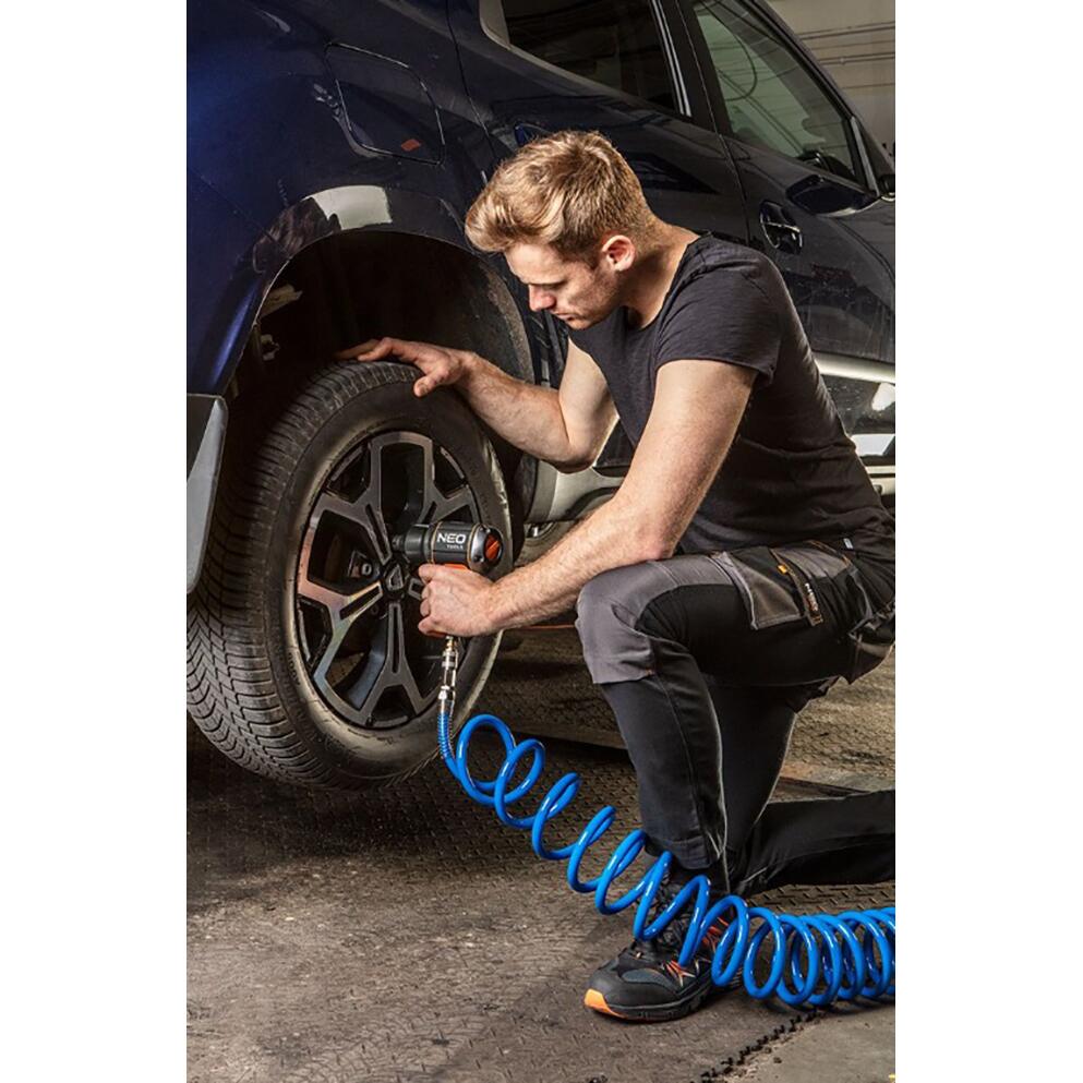 Levegő/nyomás tömlő, spirál, 10x15 mm, PU, kék, 12 bar, 15 m, NEO