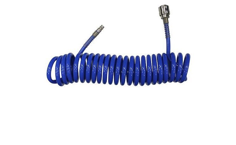 A kompresszor tömlő átmérője 8x5 mm. A tömlő spirális alakja megkönnyíti a munkát és a tárolást.