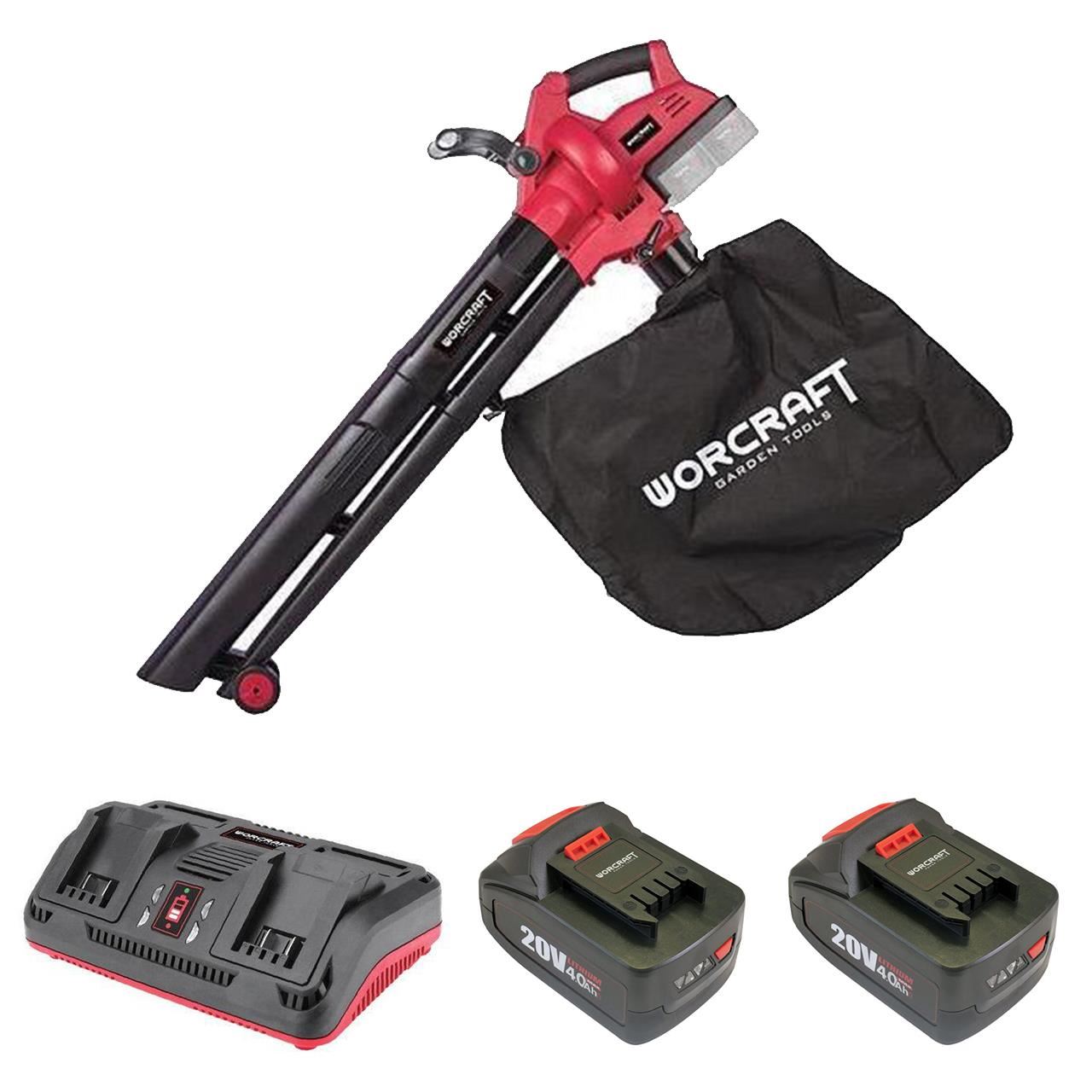 Leveles porszívó, 2 db 4 Ah akkumulátorral, 2x20V Li-ion töltővel, gyűjtőtáskával, Worcraft