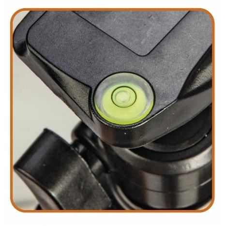 A bilincsekkel rögzített teleszkópos lábak és az állítható fej nagy stabilitást biztosítanak, és lehetővé teszik az állvány magasságának 150 cm-ig történő beállítását.