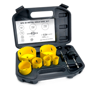 9 részes bimetál marókészletPerforált fához, PVC-hez, PE-hez és rozsdamentes acélhoz használható. A marószerszámok, más szóval a bimetál magok egy speciális készletben találhatók.
