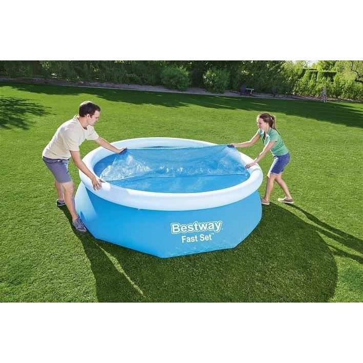 Medenceburkolat napelemes ponyva, kerek, kék, 366 cm, Bestway FlowClear