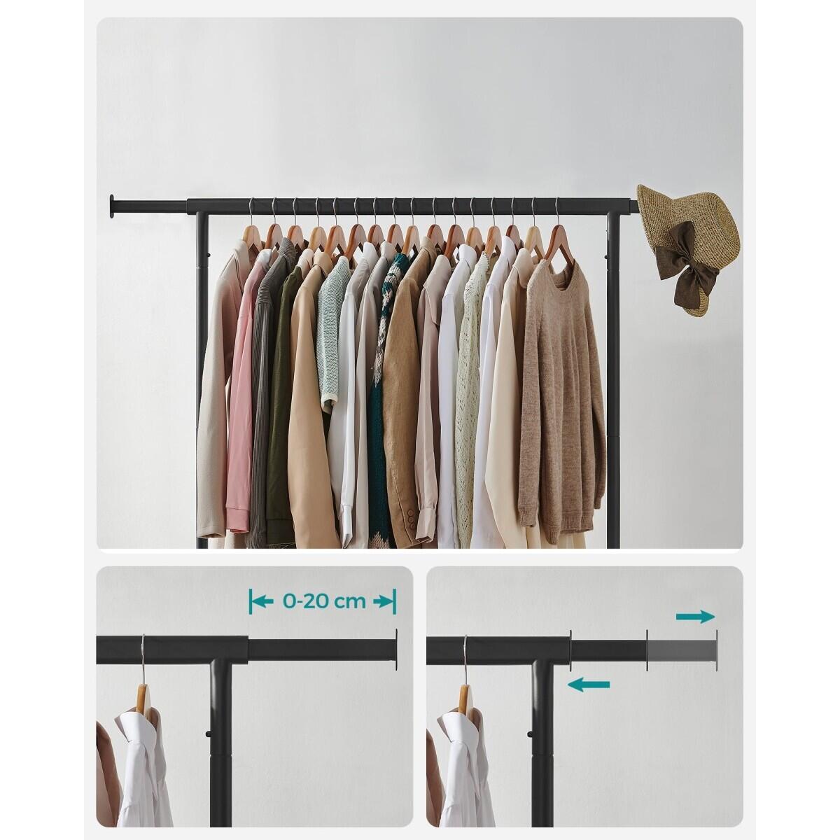 Mobil állvány kerekekkel ruha tárolására, Artool, állítható, acél, fekete, max 136 kg, 110-150x45x160 cm