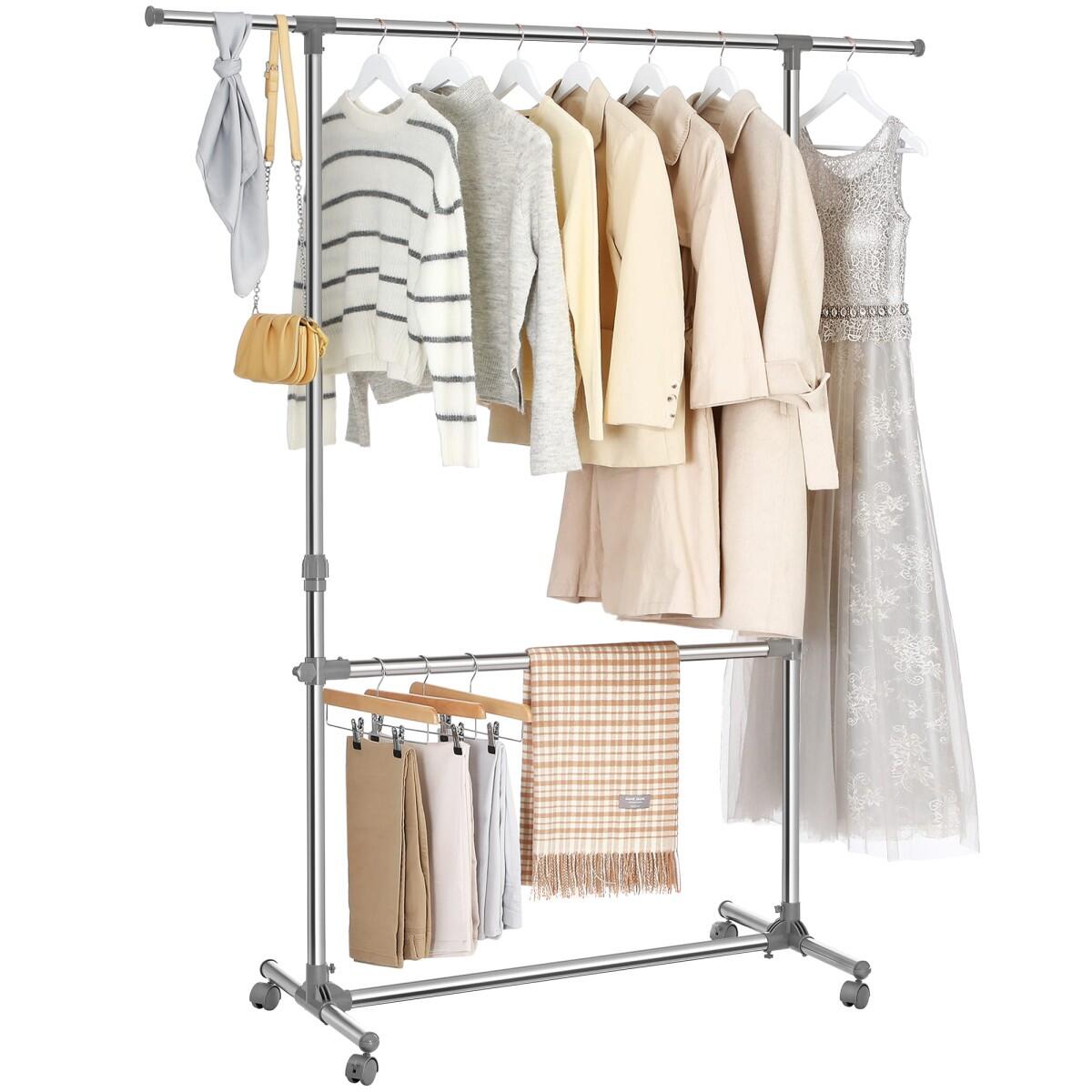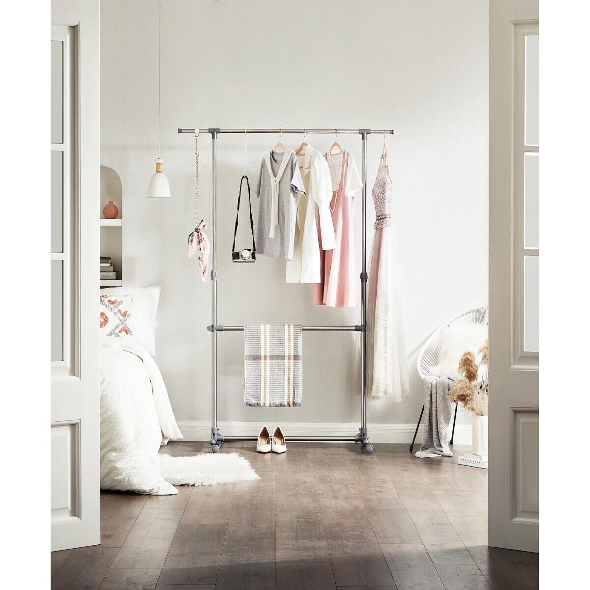Mobil ruhatartó kerekekkel, Artool, állítható, rozsdamentes acél, ezüst, max 50 kg, 101-165x49x113-198 cm