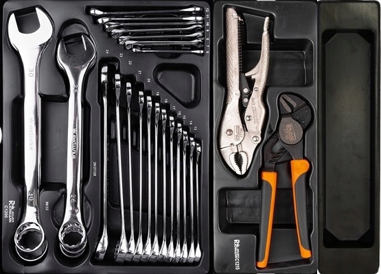 - Rövid csőfejek készlet kulccsal, fiók A TÍPUS (385x150 mm) mobil szekrényhez, 1/2" ;, 8-32 mm, 25 elem, RICHMANN EXCLUSIVE (C1205)