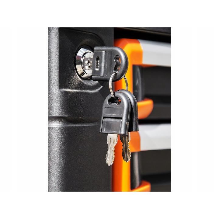 Mobil szekrény  -vel; 7 fiók golyós vezetőkön, központi kulcsos zárral, minden fiókhoz külön zárás, gumi sarkok és lökhárítók amely véd a véletlen sérülésektől.