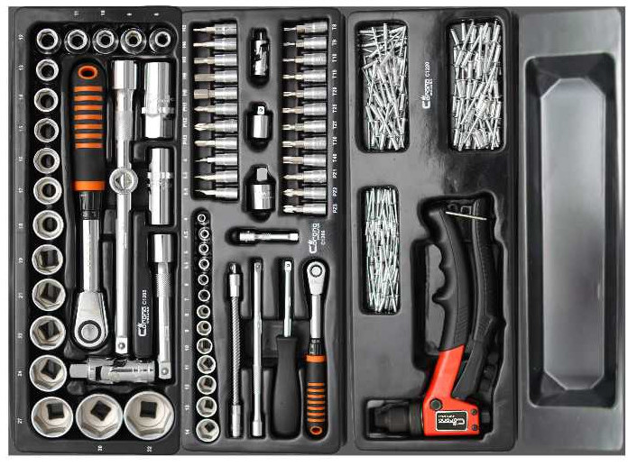 - Különféle fejkészlet kulccsal, fiók A TYPE (385x150 mm) mobil szekrényhez, 1/4" ;, 4-14 mm, 44 elem, RICHMANN EXCLUSIVE (C1206)