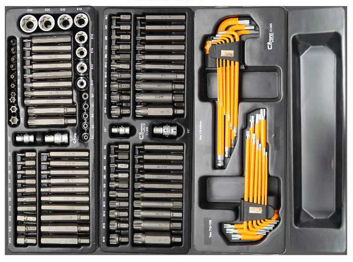 - HEX és TORX kulcskészlet, A TÍPUSÚ fiók (385x150 mm) mobil szekrényhez, 1,5-10 mm, T10-T50, 18 db, RICHMANN EXCLUSIVE (C1209)