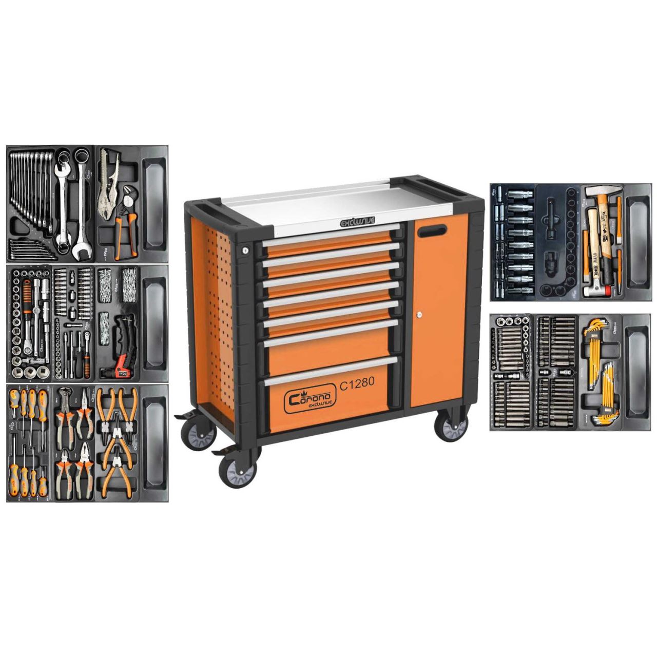 Mobil szerszámos szekrény, 7 fiók + oldaltér ajtóval, 970x927x465 mm, 14 szerszámkészletet, 268 elemet tartalmaz, RICHMANN EXCLUSIVE Mobil szerszámos szekrény, 7 fiókkal és hellyel ...