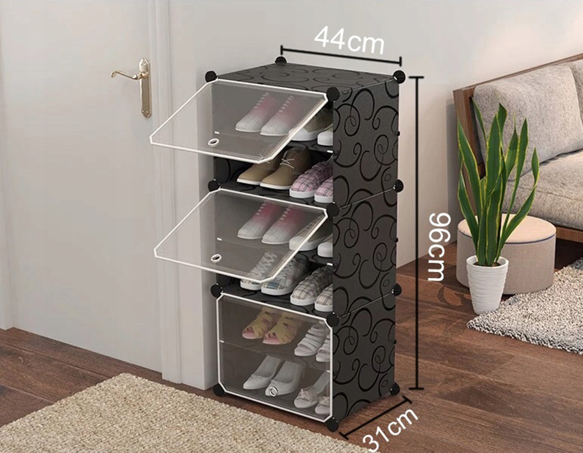 Moduláris cipőtároló szekrény, Mufart, műanyag, 3 rekeszes, 6 polc, 44x31x96 cm
