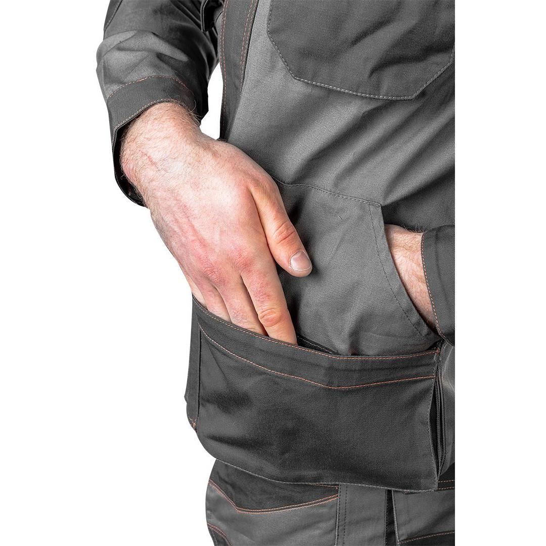 A NEO munkakabát 100% pamut anyagból készült, mely nagy tartósságot és jó szakadásállóságot biztosít.