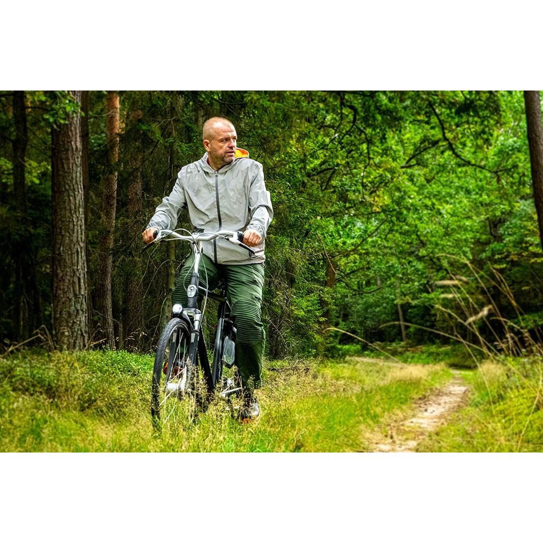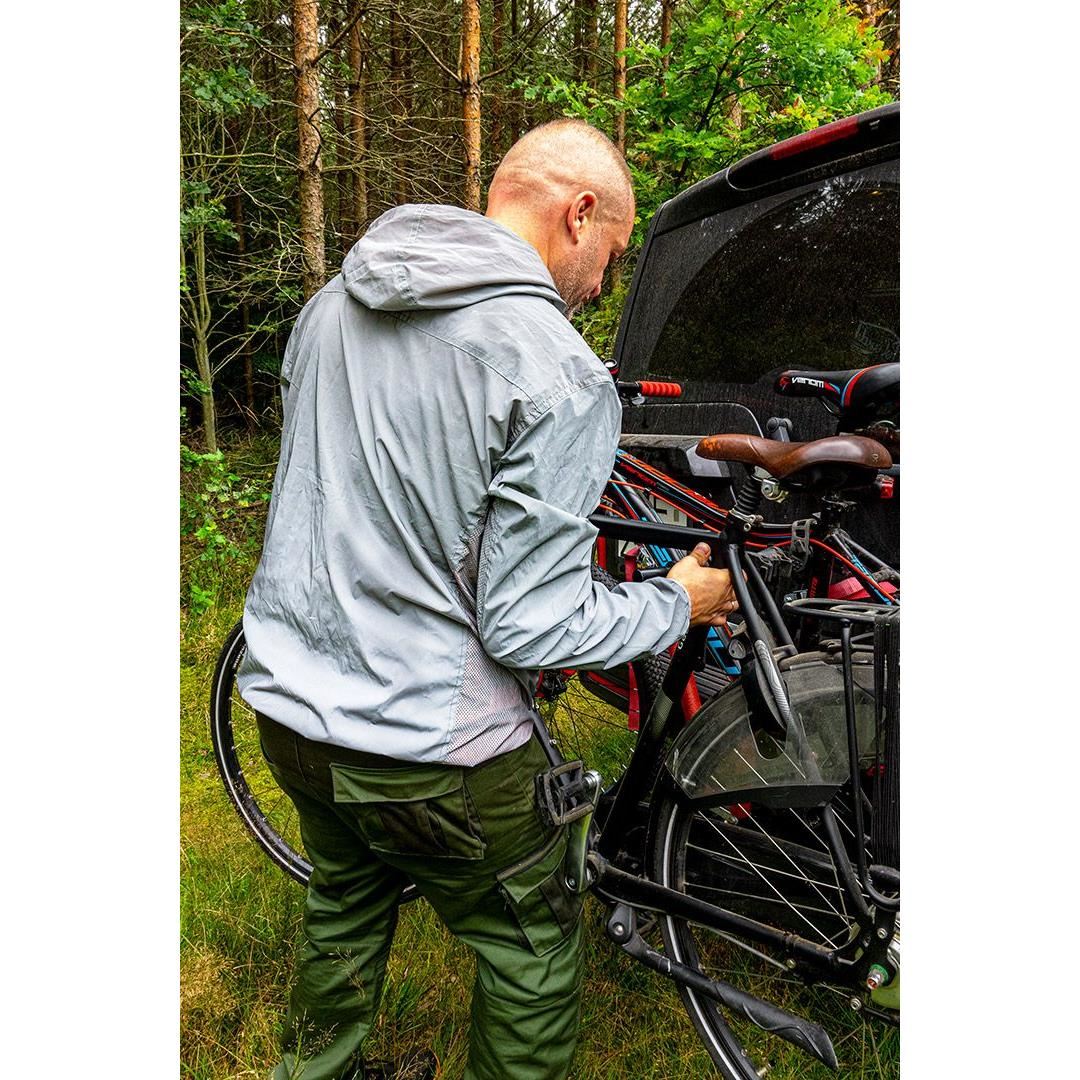 Magas galléros kapucnival rendelkezik. A felesleges nedvességet a kabát oldalán lévő anyagon keresztül távolítják el. Fényvisszaverő anyag, amelyből a kabát készül jó láthatóságot és biztonságot biztosít a nap bármely szakában és különféle időjárási körülmények között. Érdemes hazalátogatni, főleg városon kívül, amikor fontos a jó láthatóság.