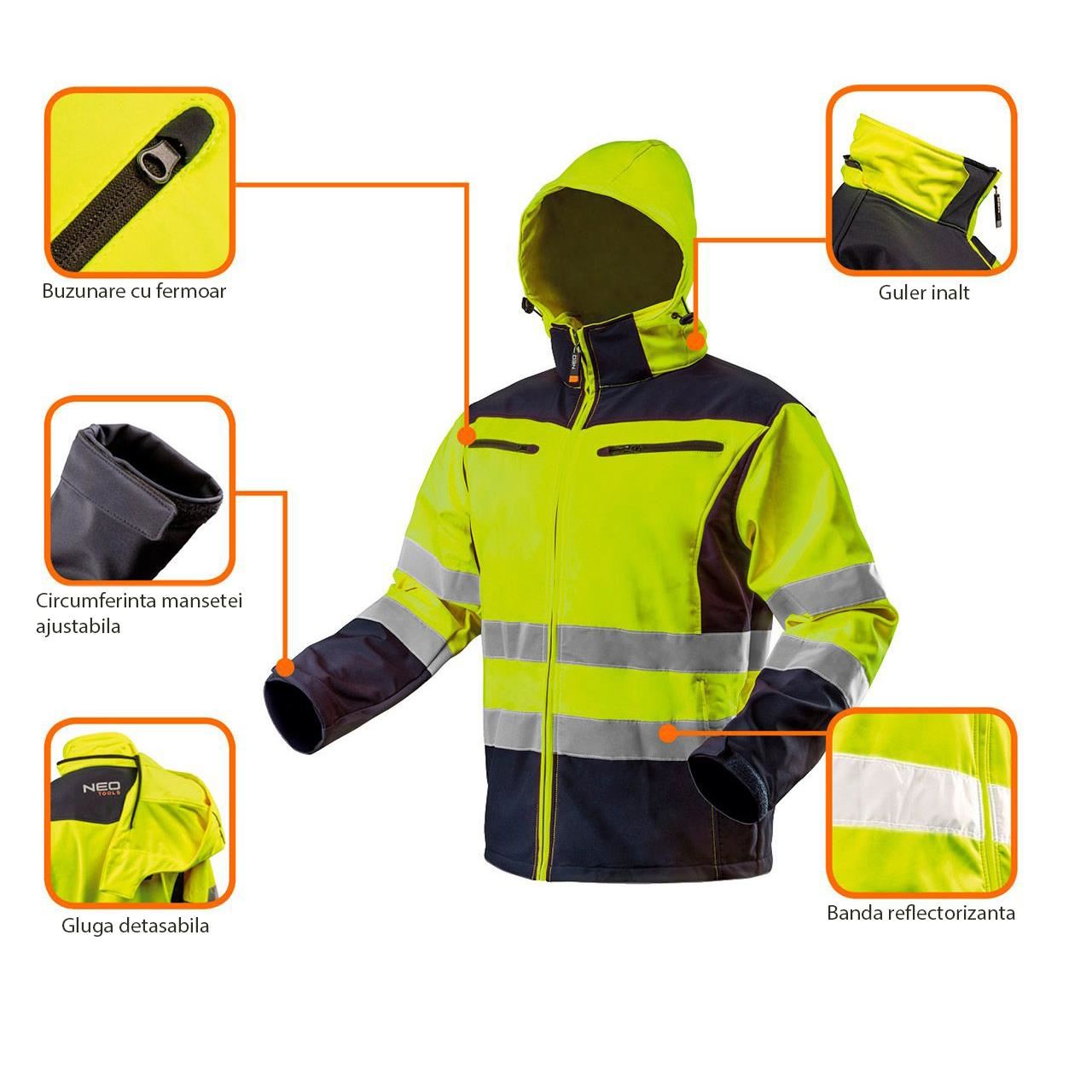 A NEO  jól látható munkakabátja praktikus megoldás az   biztonságának növelésére; Ez az az  -ből áll; jelzi jelenlétét minden nappali fényviszonyok között, de mesterséges fénnyel megvilágított sötétben is.