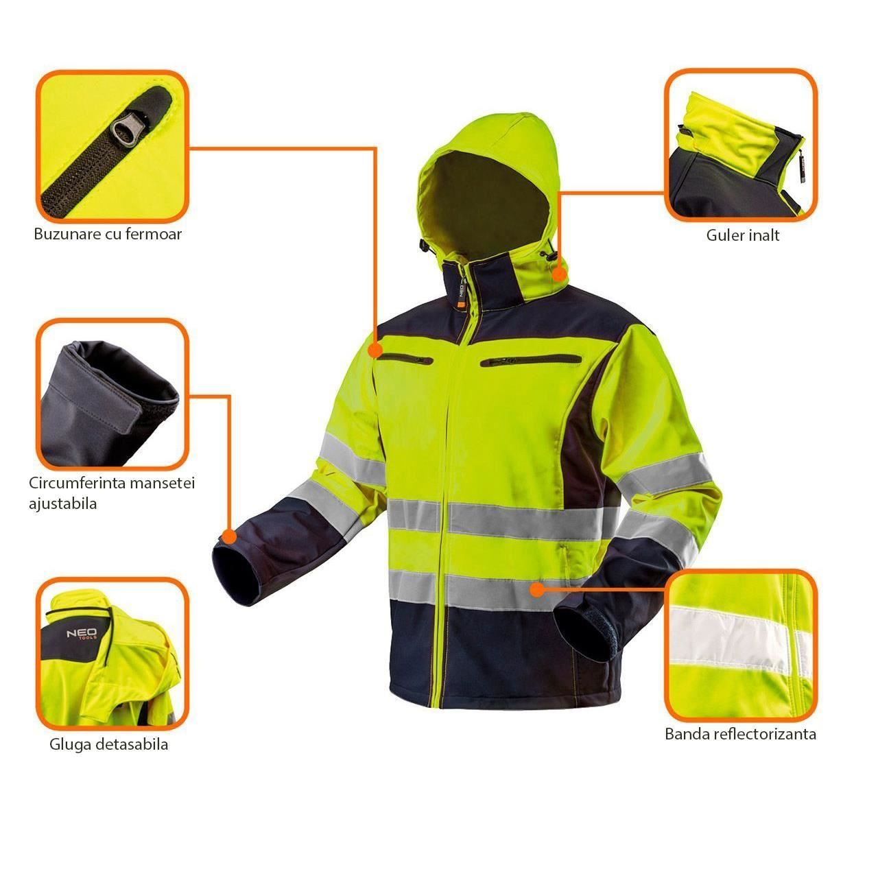 A NEO  jól látható munkakabátja praktikus megoldás az   biztonságának növelésére; Ez az az  -ből áll; jelzi jelenlétét minden nappali fényviszonyok között, de mesterséges fénnyel megvilágított sötétben is.