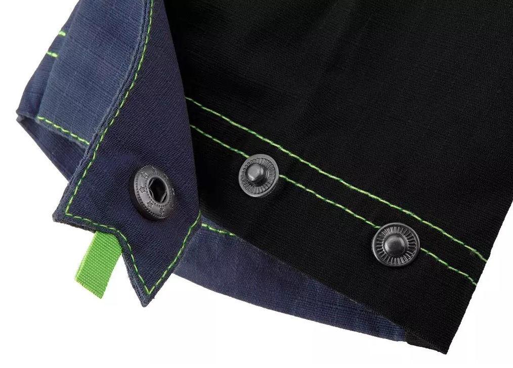 A munkakabát praktikus zsebekkel rendelkezik: két vállzseb (tollnak, zseblámpának vagy csavarhúzónak), két mellzseb (gombokkal), tágas oldalzseb (cipzárral) és két hátsó zseb (cipzárral és Oxford anyaggal megerősítve) ).