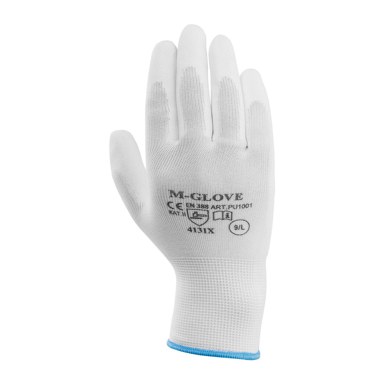 Munkakesztyű, Richmann, poliészter, poliuretán, S méret, fehér