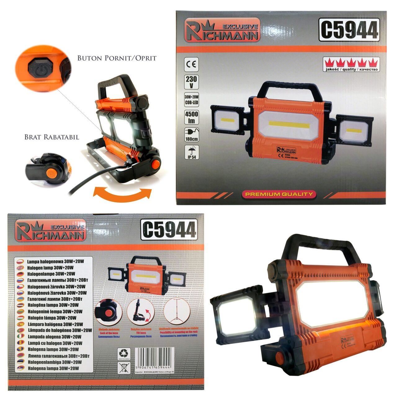Munkalámpa, COB LED, 30 W, 4500 lm, IP54, Richmann Exclusive