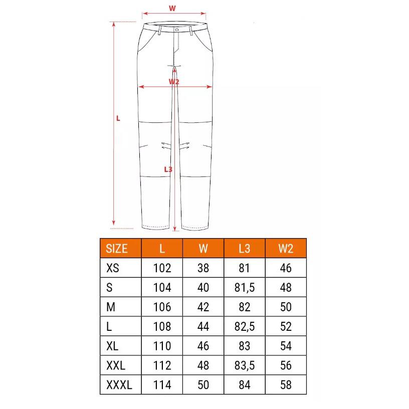 98% pamutból és 2% elasztánból készültek, ami bármilyen alakhoz javítja a nadrág illeszkedését. Kiváló minőségüknek köszönhetően nem csak munkára, hanem mindennapi viseletre is alkalmasak.