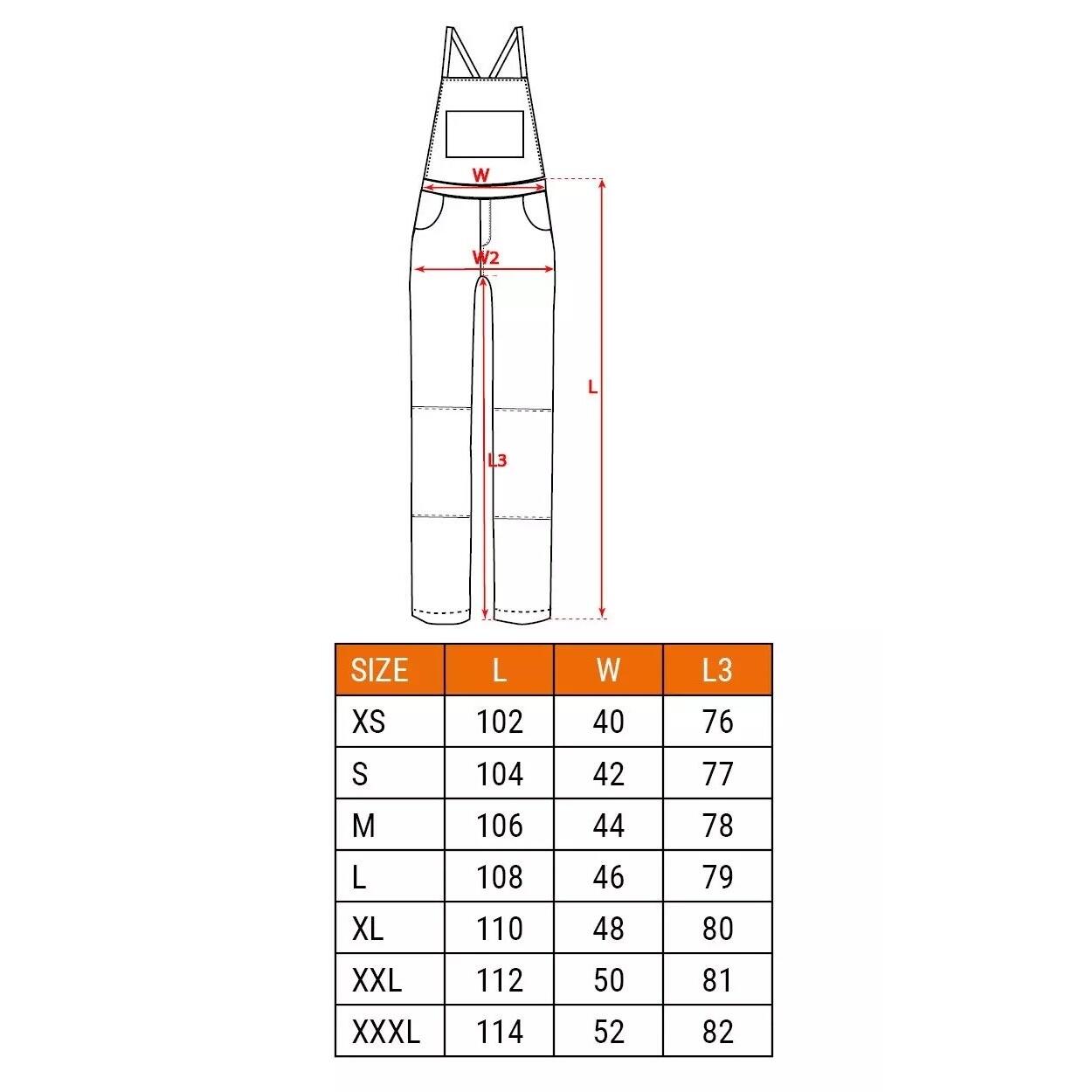Az mellvédes nadrág, PREMIUM modell, a NEO-tól,  -ből készül, 60% pamutból, 35% poliészterből és  -ből; 5% elasztánból.