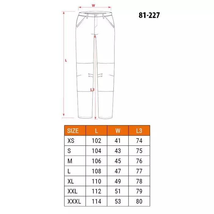 A nadrág térdrészében Cordura anyaggal van megerősítve, amely megkönnyíti a munkavégzést és nem korlátozza a mozgást.