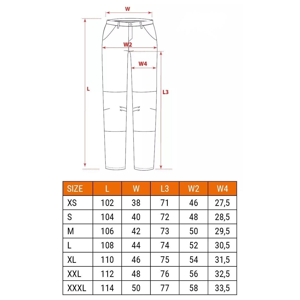 A nadrágon többfunkciós   zsebek; tágas, térdig érő profilozott, kiegészítő zseb a lábfej alján, bőrbetétekkel logóval, névre szóló betéttel és CE tanúsítvánnyal az EN ISO 13688:2013 szabvány szerint.