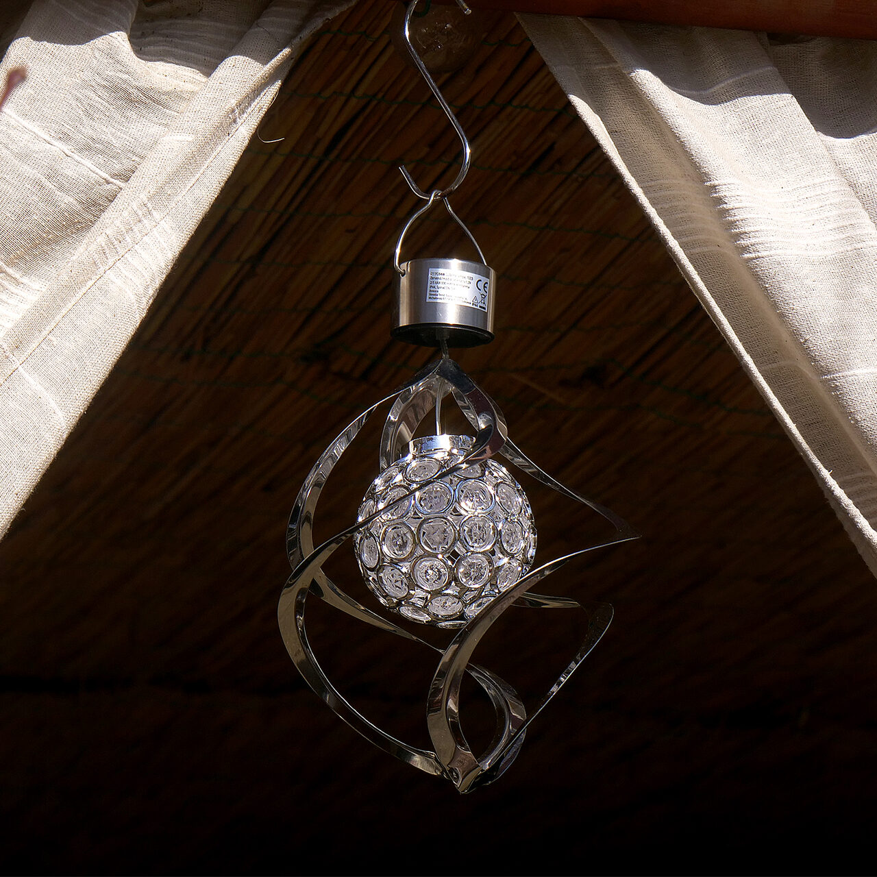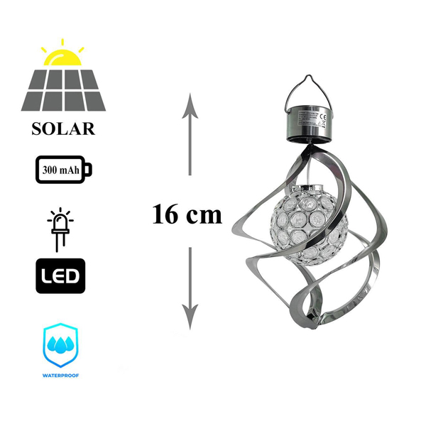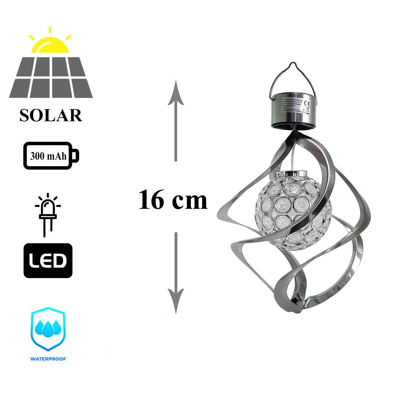 Dekoratív kerti napelemes lámpa, időjárásálló napelemmel és 1 db tarka LED izzóval, teljes feltöltéssel akár 8 órát is képes világítani.