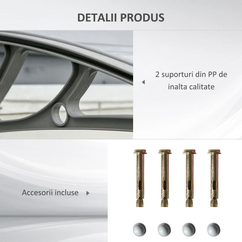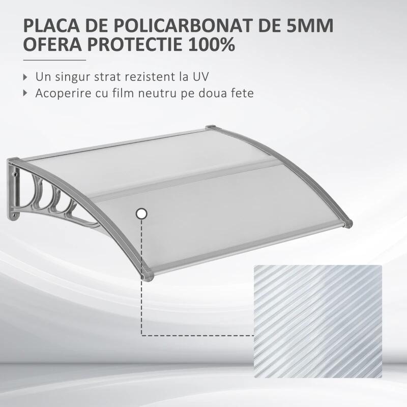 Hajlított formája hatékony védelmet nyújt a napfény, UV-sugarak, hó és eső ellen. Könnyen falra szerelhető, és a legtöbb ajtóhoz és ablakhoz illeszkedik, így sokoldalú tartozék minden kültéri területhez, amely extra védelmet igényel.