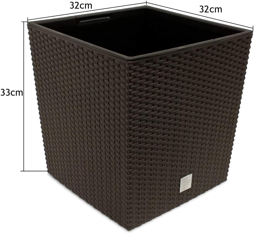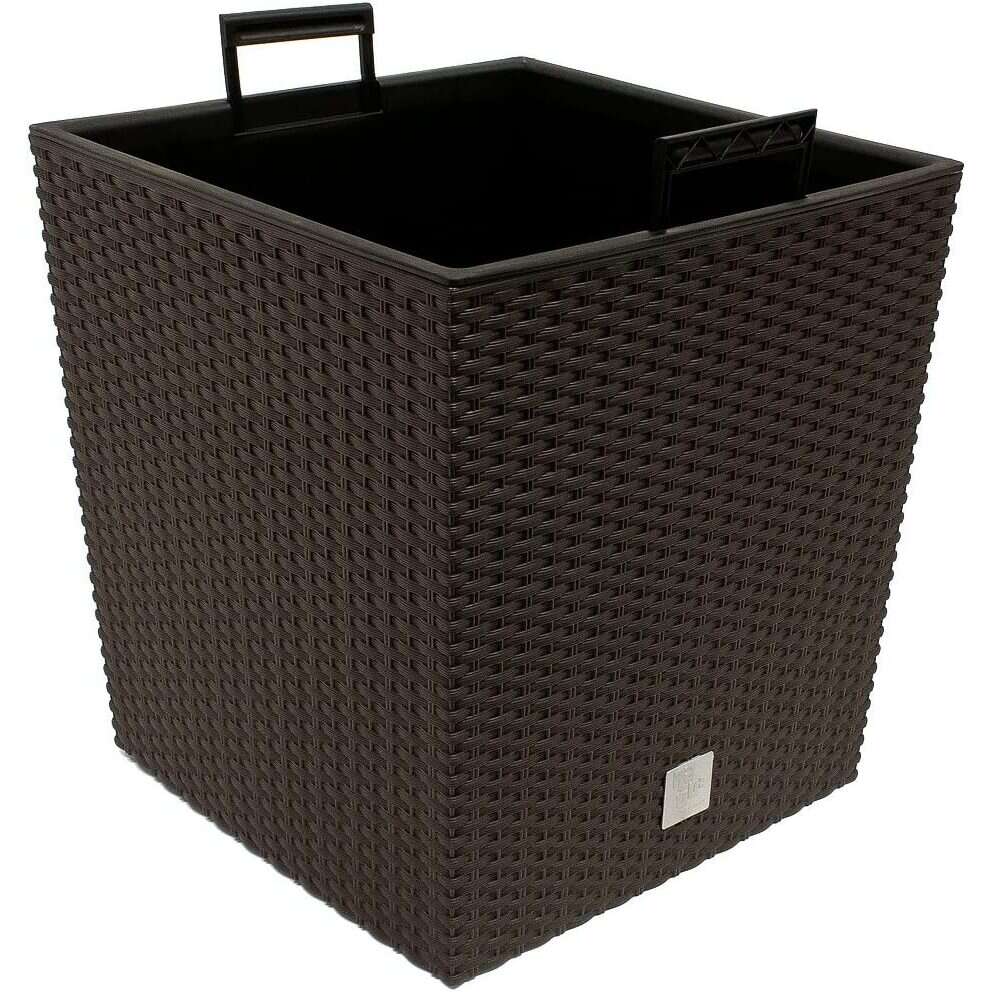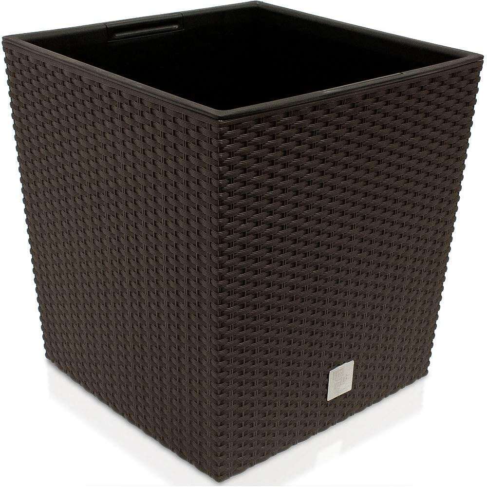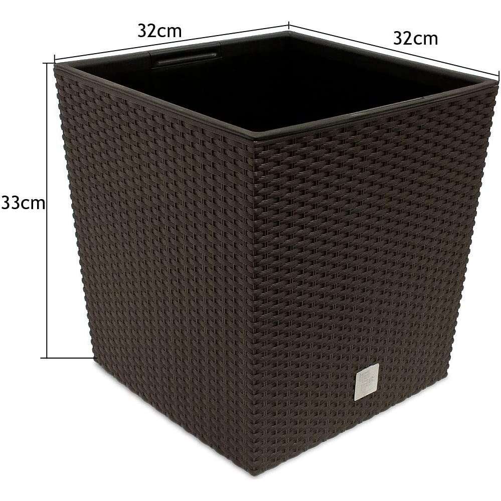 Négyzet alakú virágcserép, RATO Iow, 32x32 cm, magasság 32,5 cm, 32 L, rattan utánzat, barna, Prosperplast