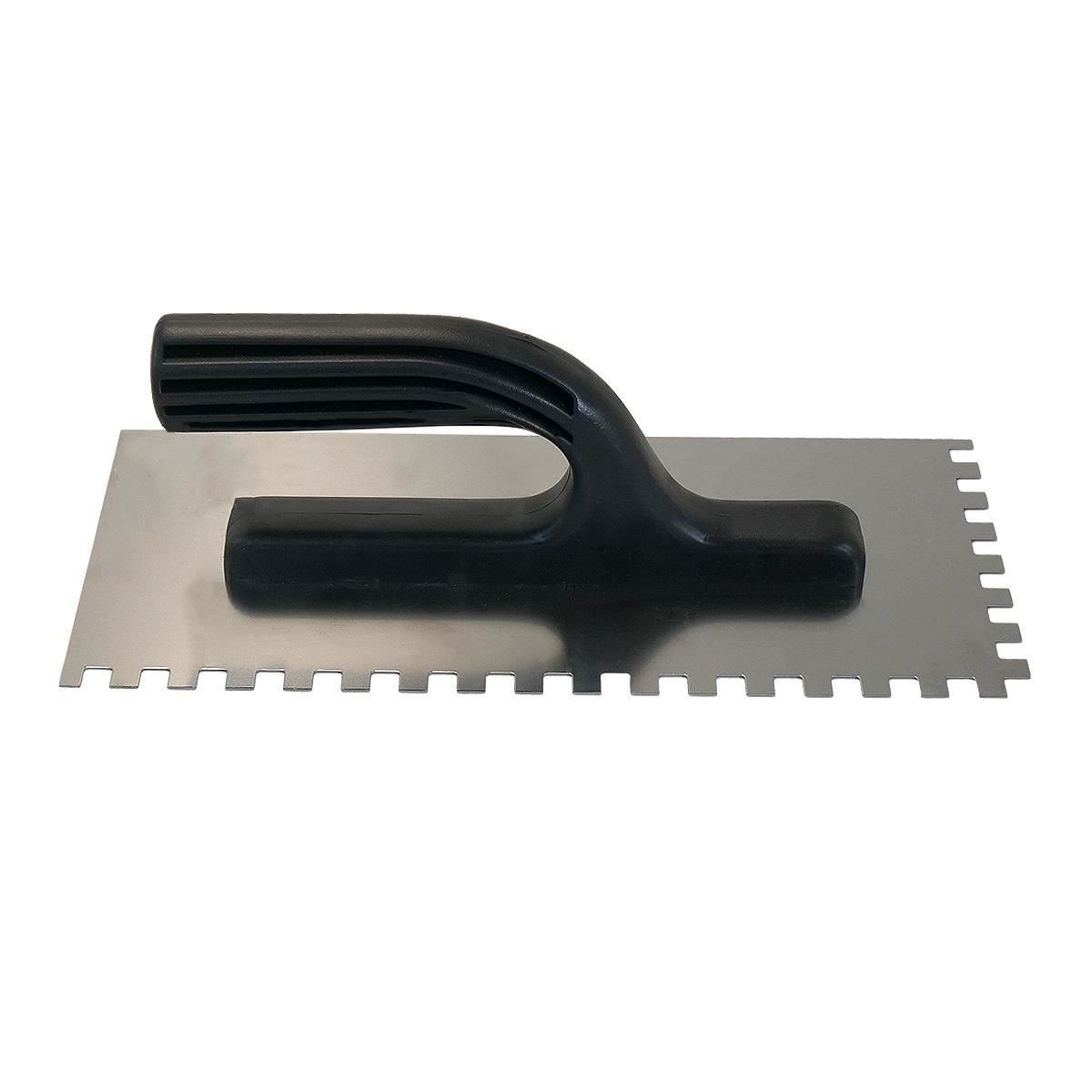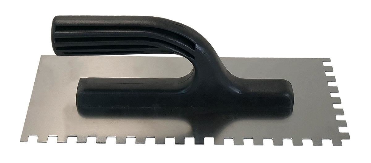 Glettvas acél simító, fogakkal 6x6 mm, műanyag nyél, 13x27 cm