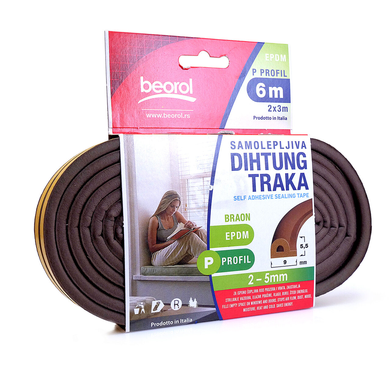 Nyílászáró szigetelő szalag, barna, profil P 2x3 m, Beorol