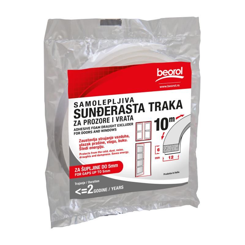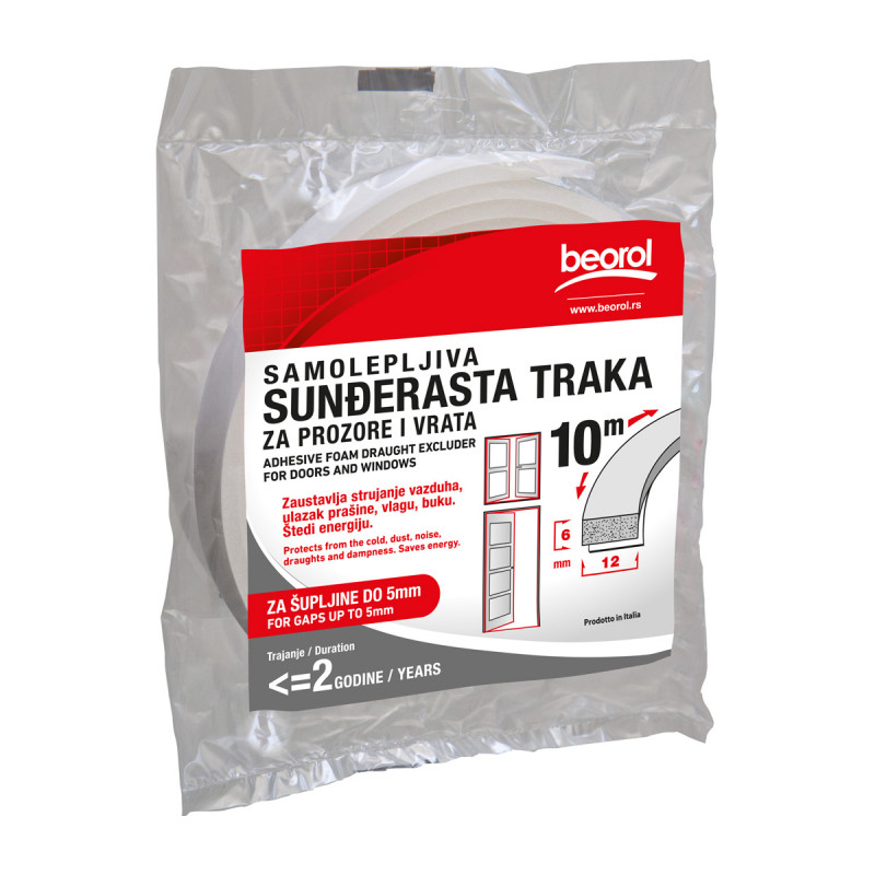 Ajtó- és ablaktömítő szalag, szivacs 6 x 12 mm, 10 m, BEOROL Öntapadó szivacsszalag ablakokhoz és ajtókhoz  -től; a levegő, a por, a nedvesség, a zaj megállítására és a megtakarításra szolgál...